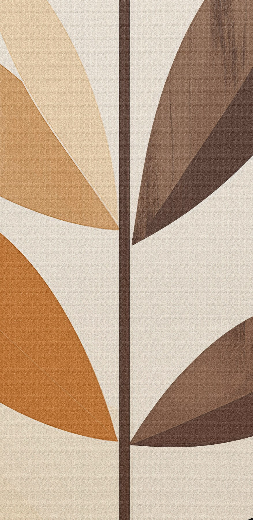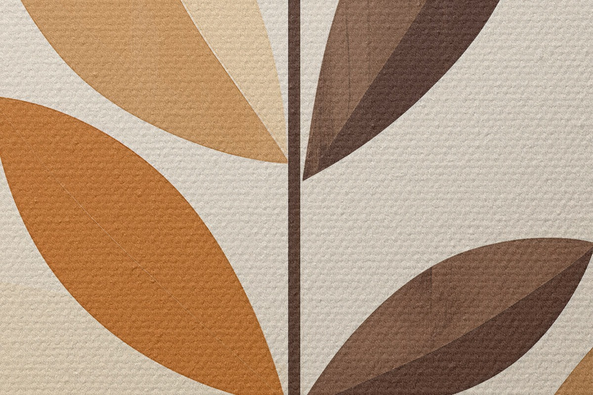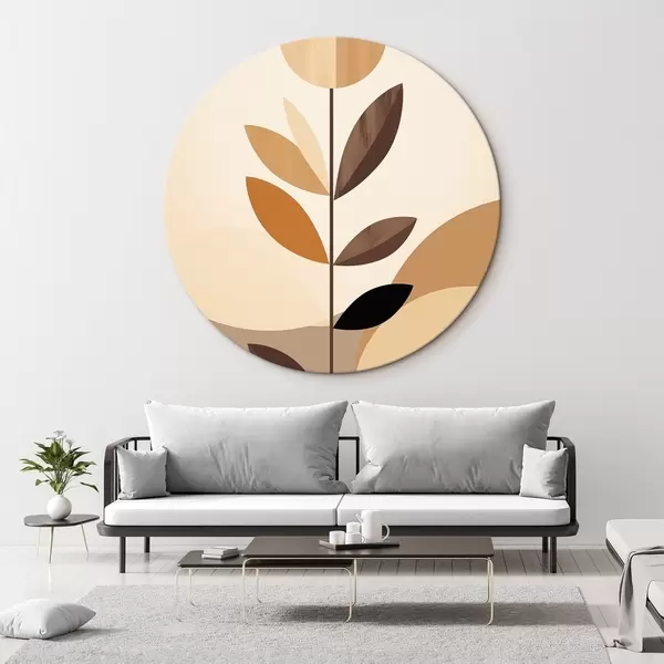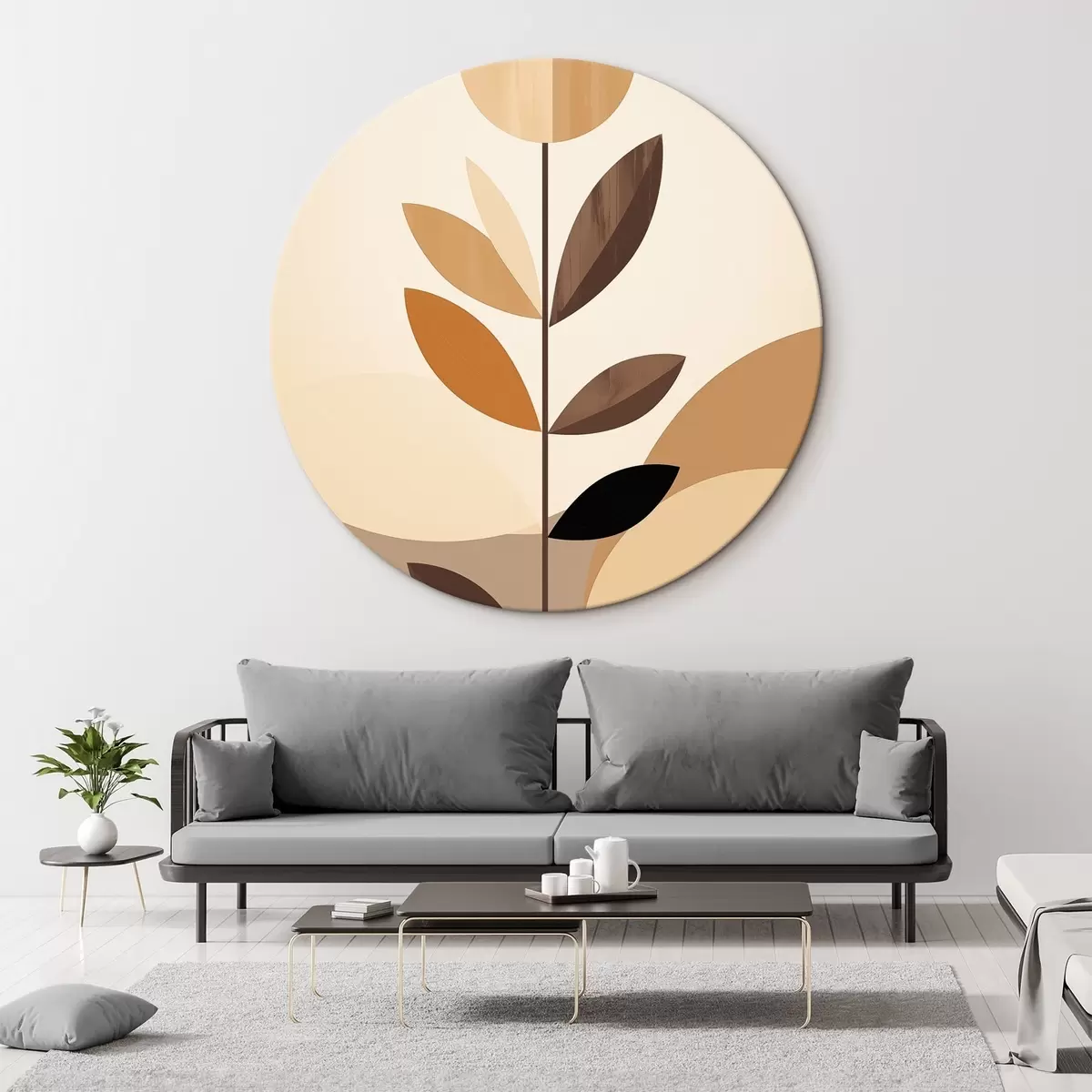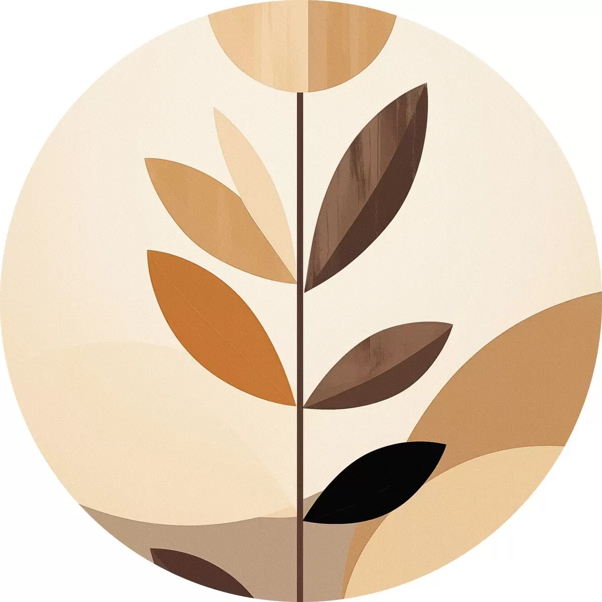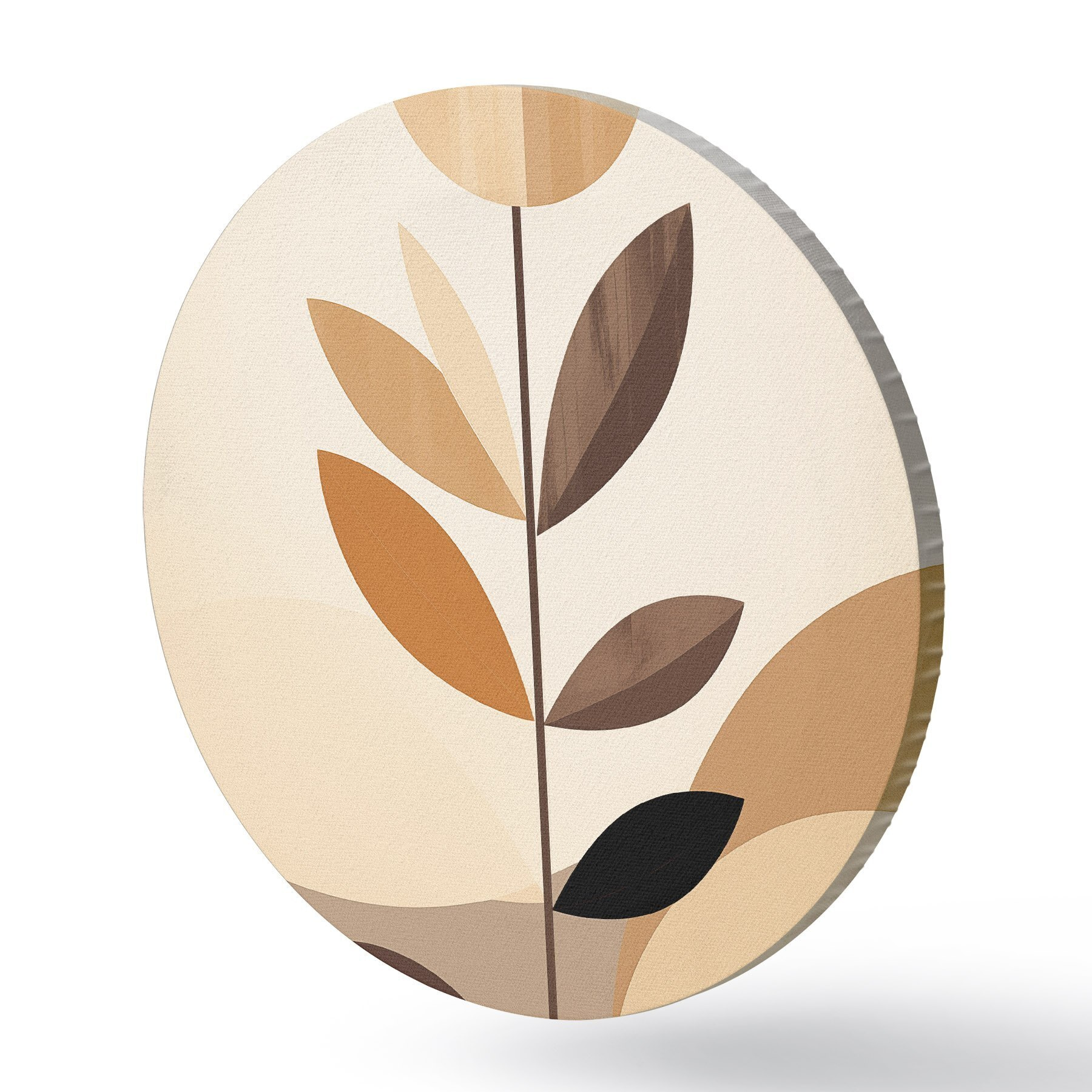 Okrągły obraz Stylizowany kwiat z geometrycznymi liśćmi w ciepłych odcieniach Nr r46500