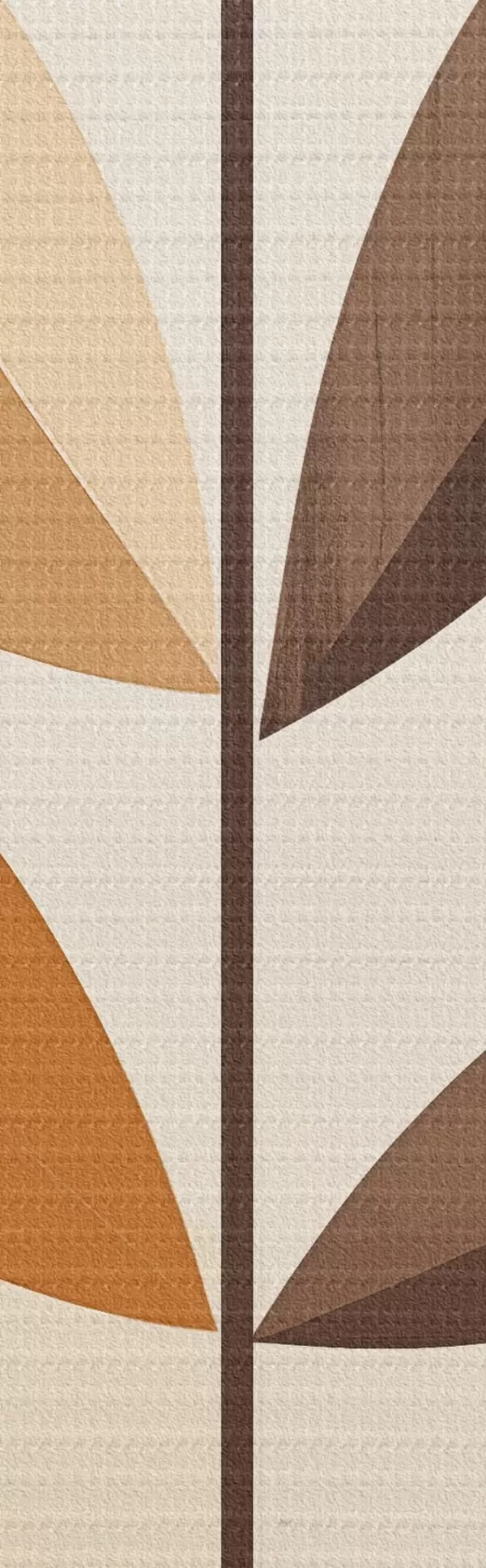 Okrągły obraz Stylizowany kwiat z geometrycznymi liśćmi w ciepłych odcieniach Nr r46500