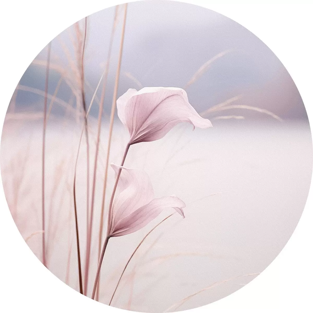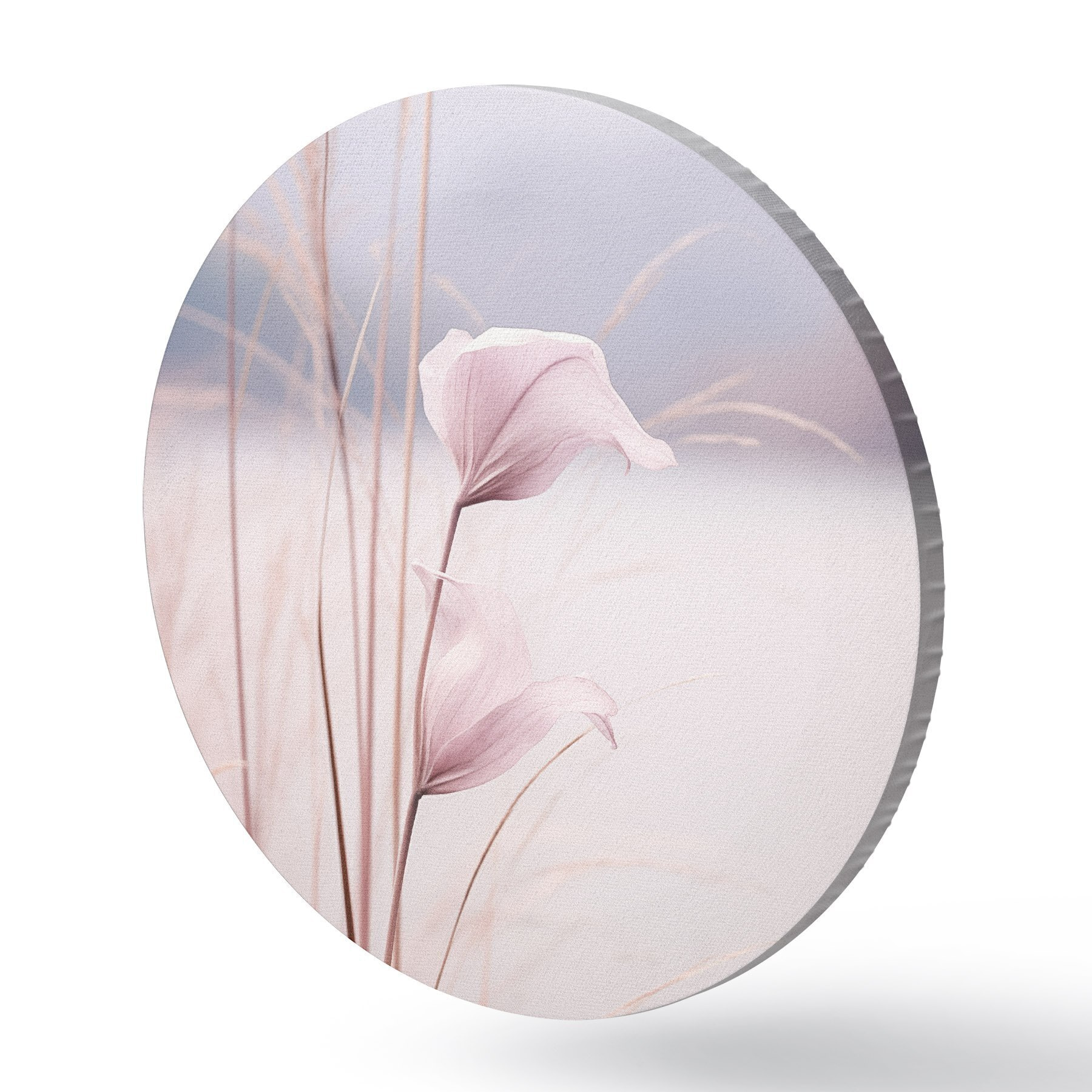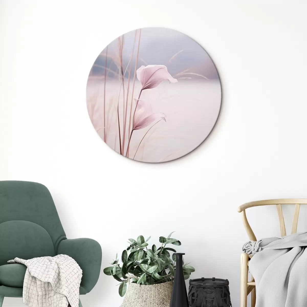 Okrągłe obrazy Delikatne różowe kwiaty nad spokojnym brzegiem jeziora r46503