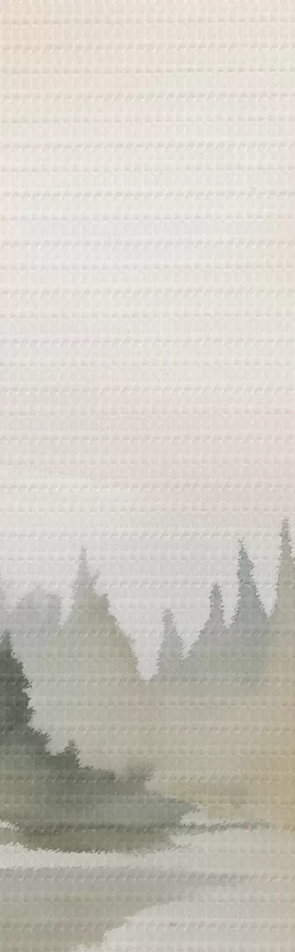 Okrągły obraz Mglisty las iglasty nad spokojną rzeką, styl akwarelowy Nr r46507