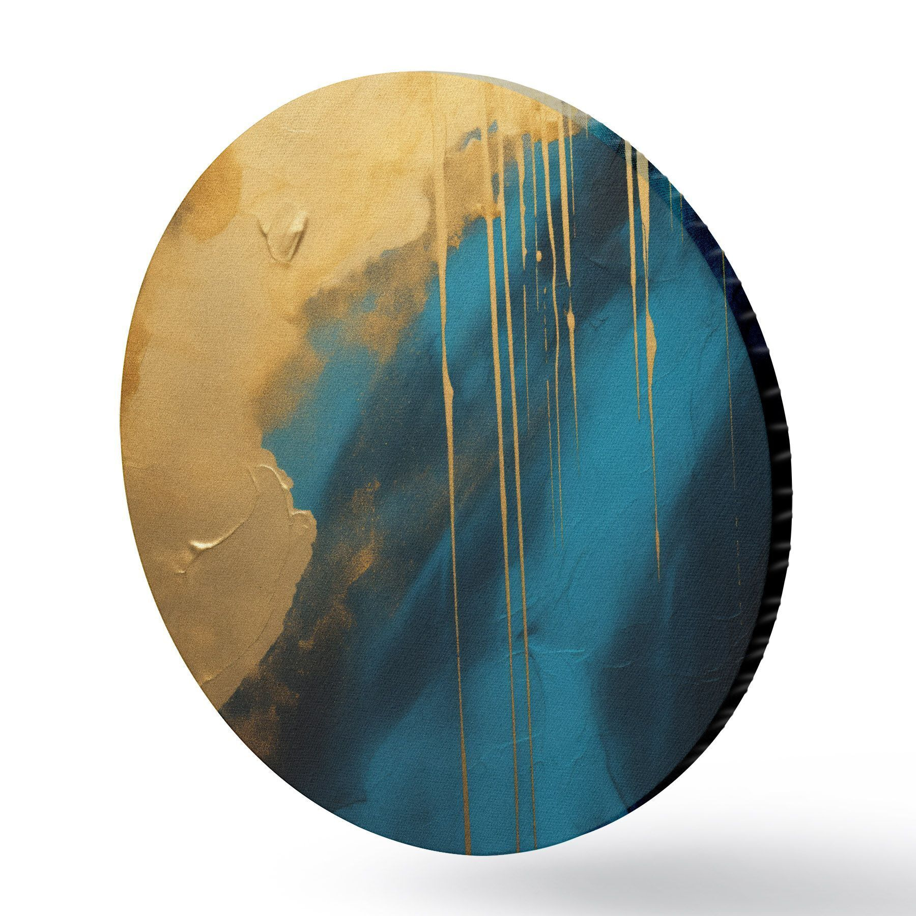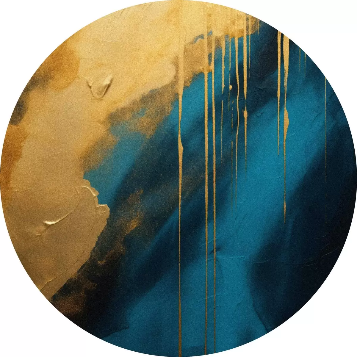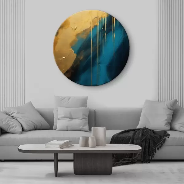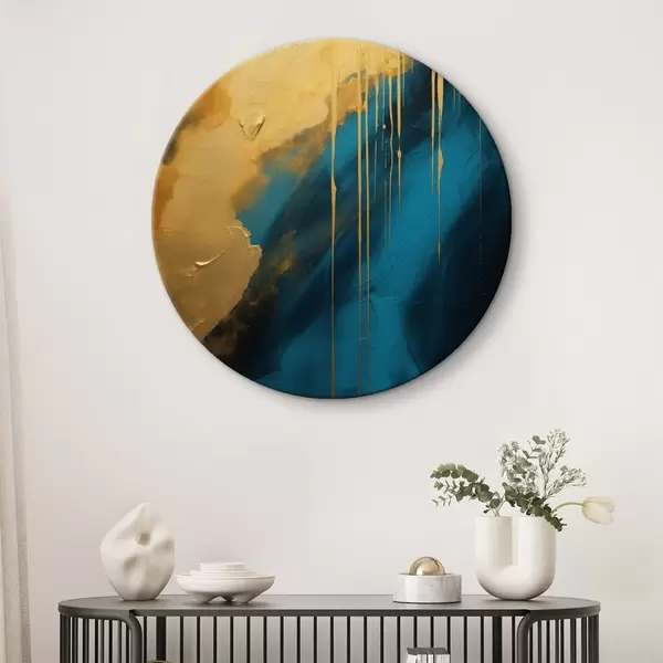 Okrągłe obrazy Turkusowo-granatowy abstrakcyjny wzór z płynnymi, ciepłymi akcentami r46509