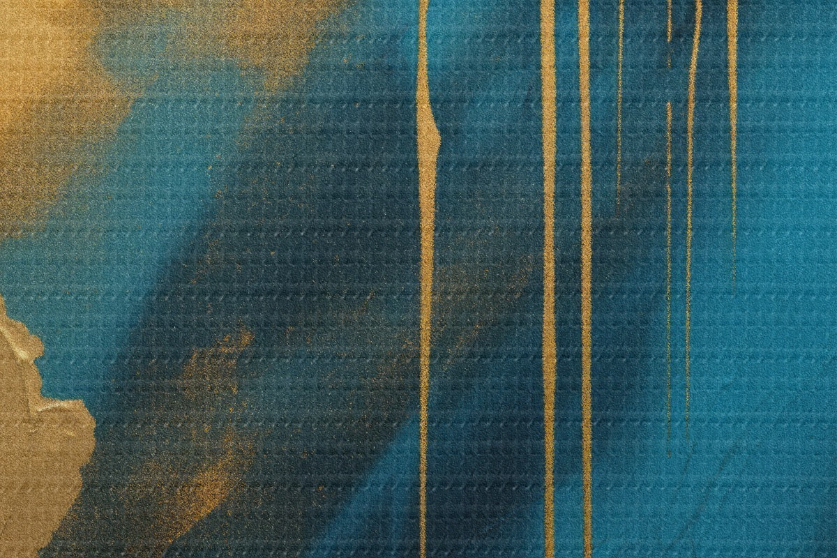 Okrągły obraz Turkusowo-granatowy abstrakcyjny wzór z płynnymi, ciepłymi akcentami Nr r46509