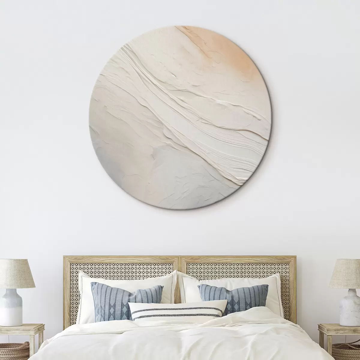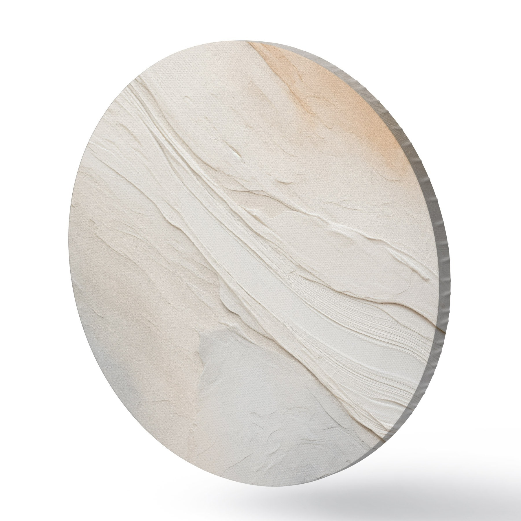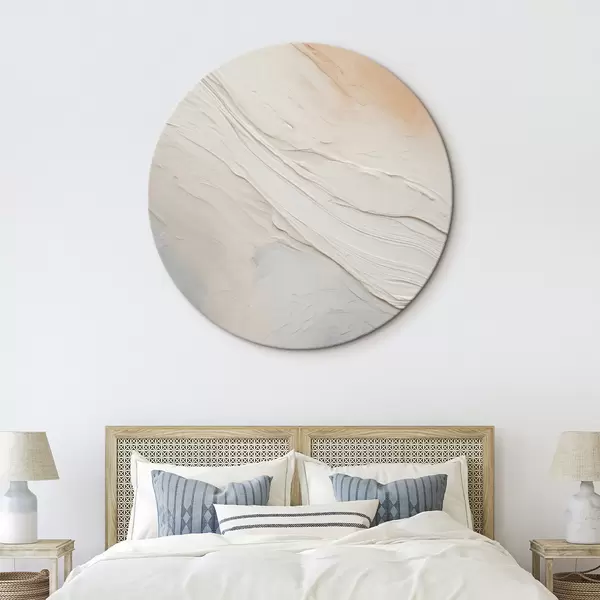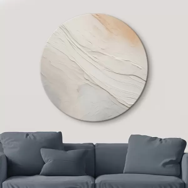 Okrągły obraz Teksturowane fale tynku w delikatnych odcieniach kości słoniowej i piasku Nr r46510