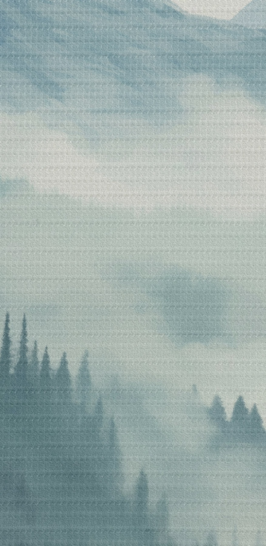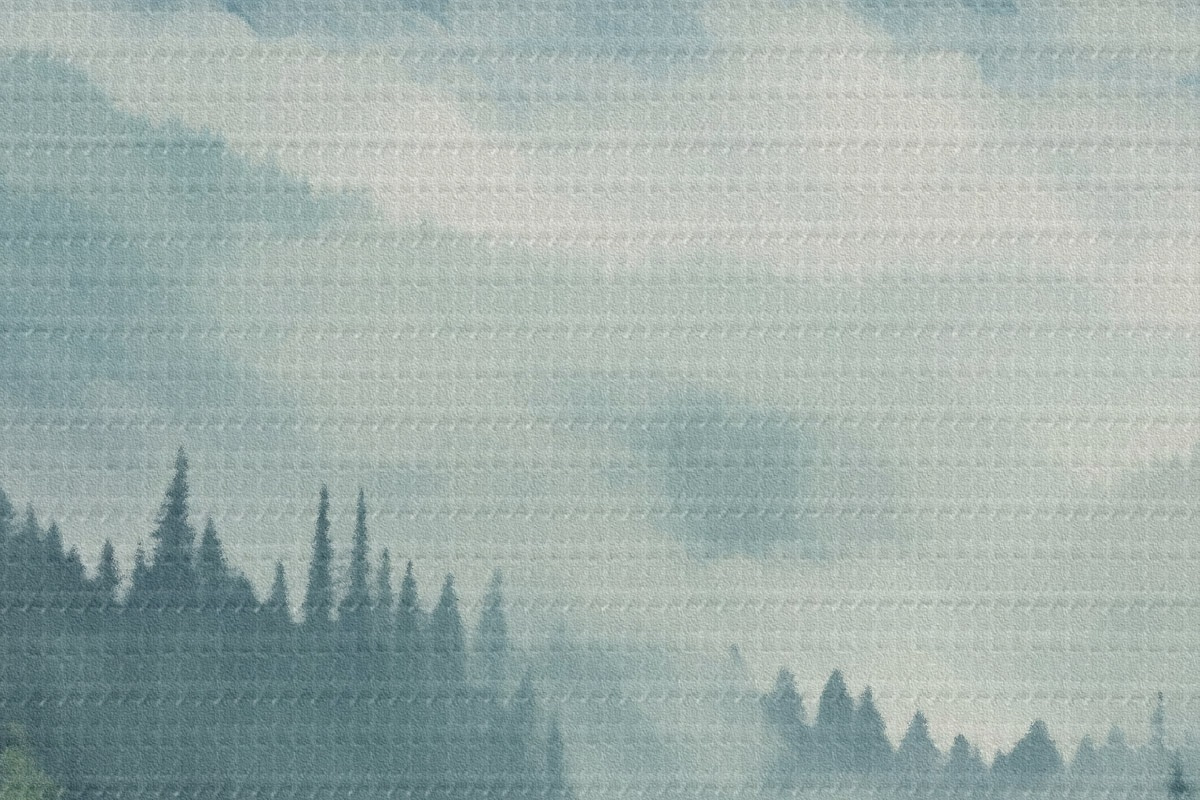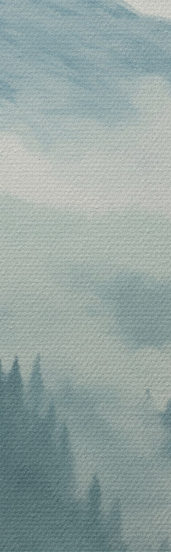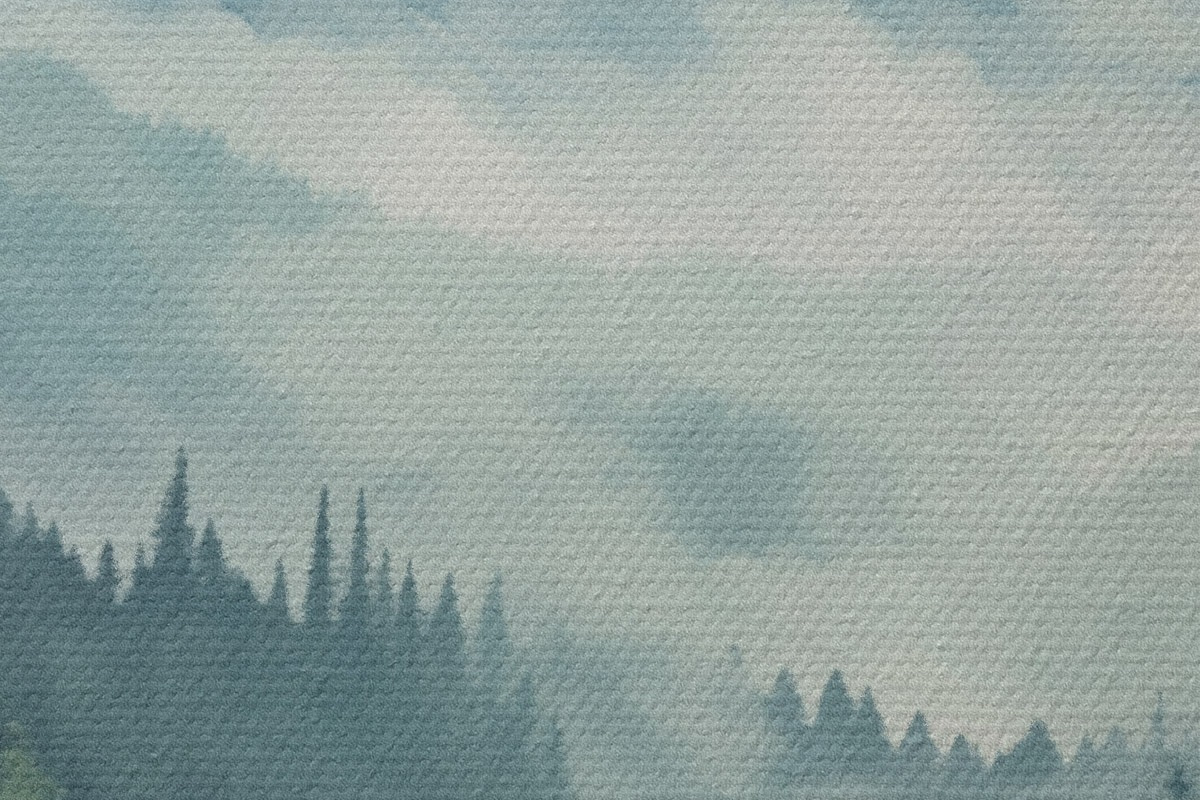 Okrągły obraz Góry i lasy w delikatnej porannej mgle, namalowane akwarelą Nr r46519