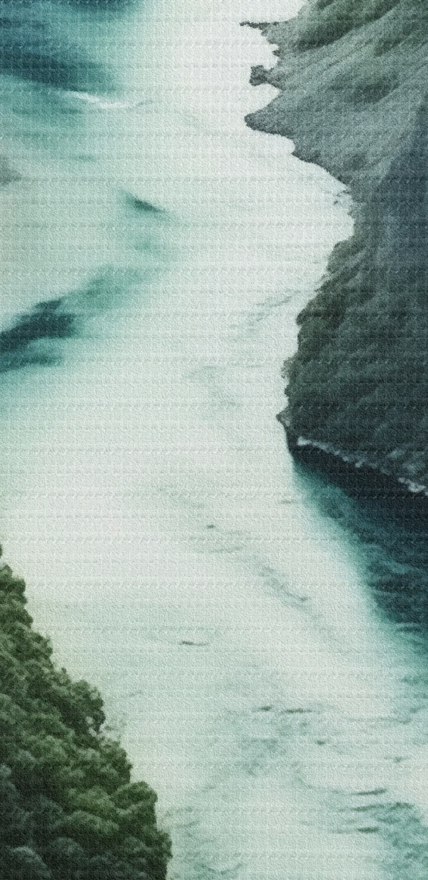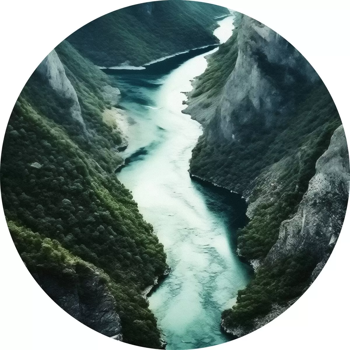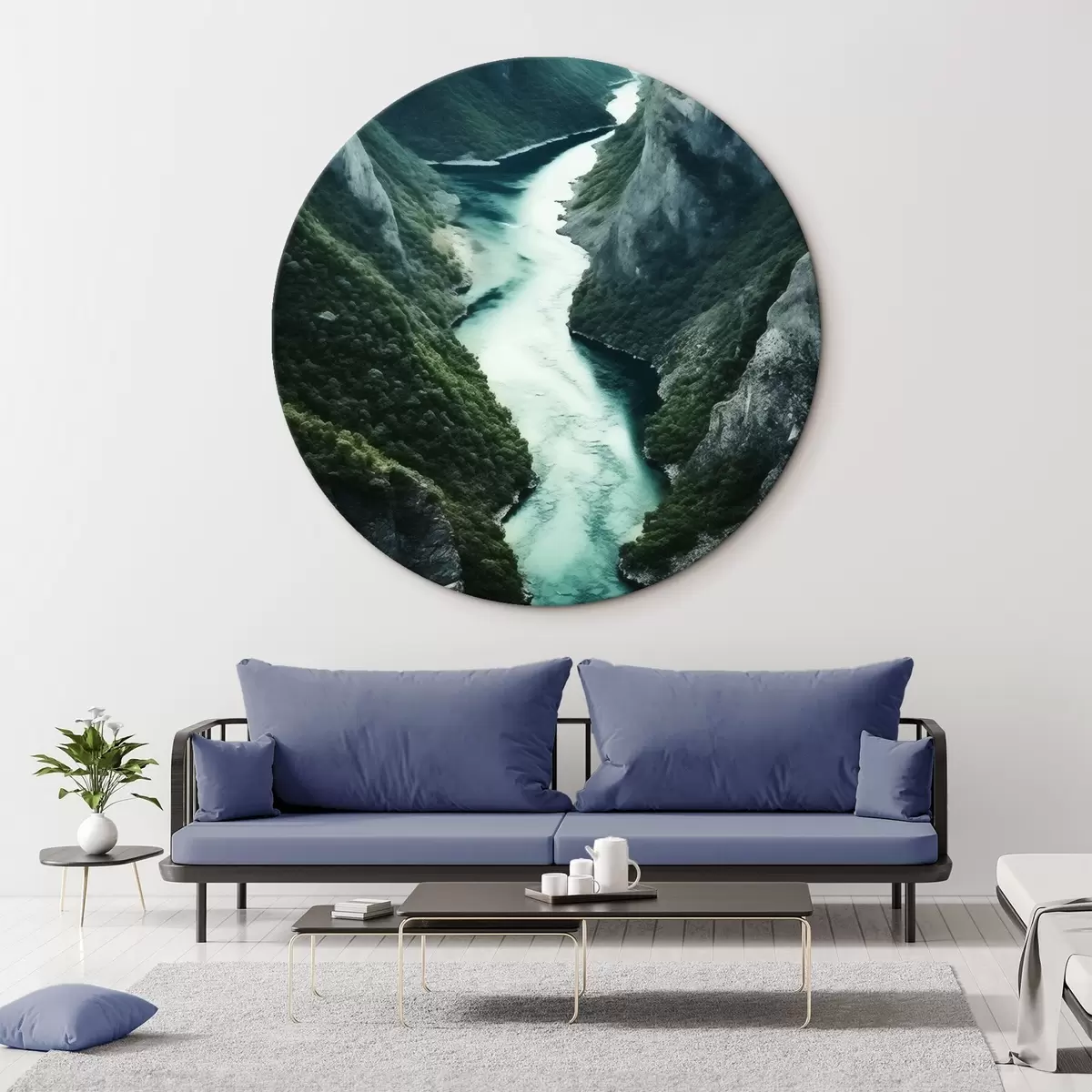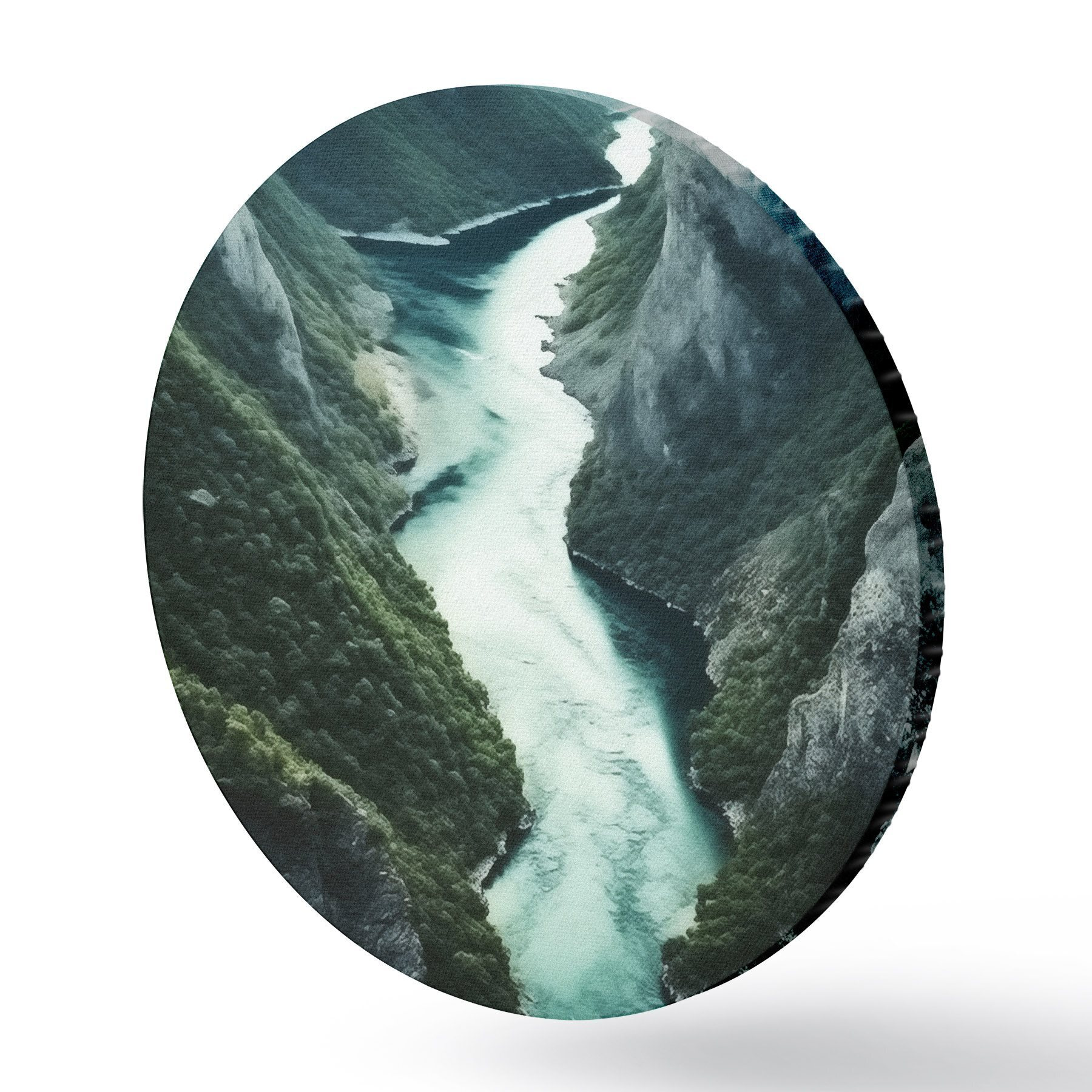 Okrągły obraz Wąski wąwóz z turkusowym nurtem płynącym z góry Nr r46522