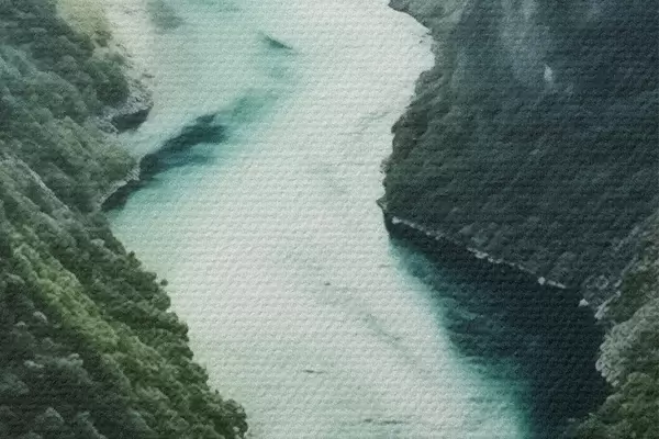 Okrągły obraz Wąski wąwóz z turkusowym nurtem płynącym z góry Nr r46522