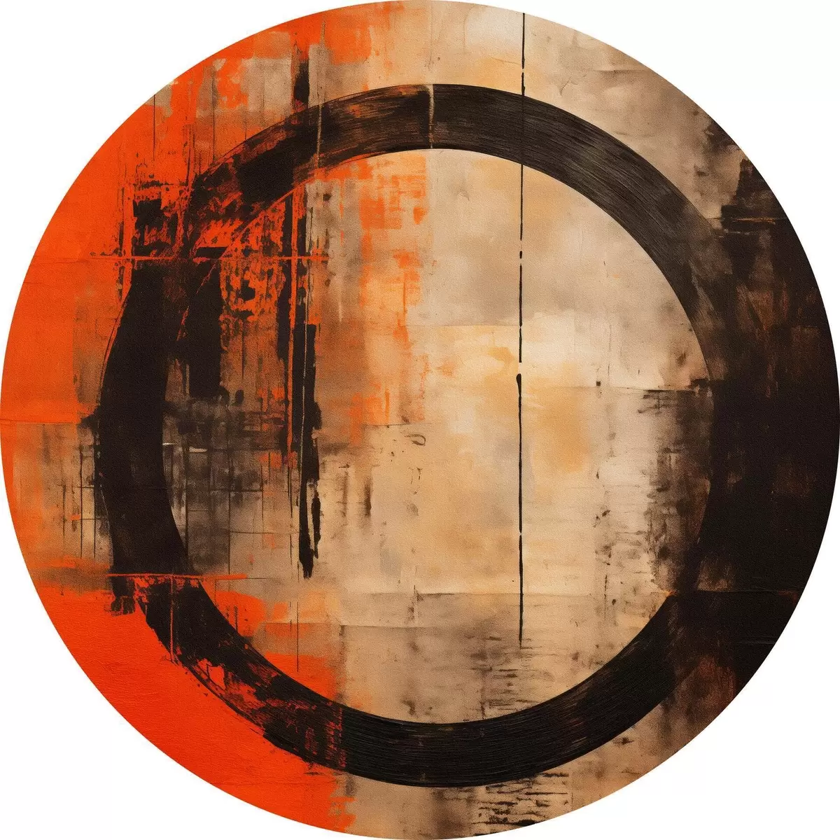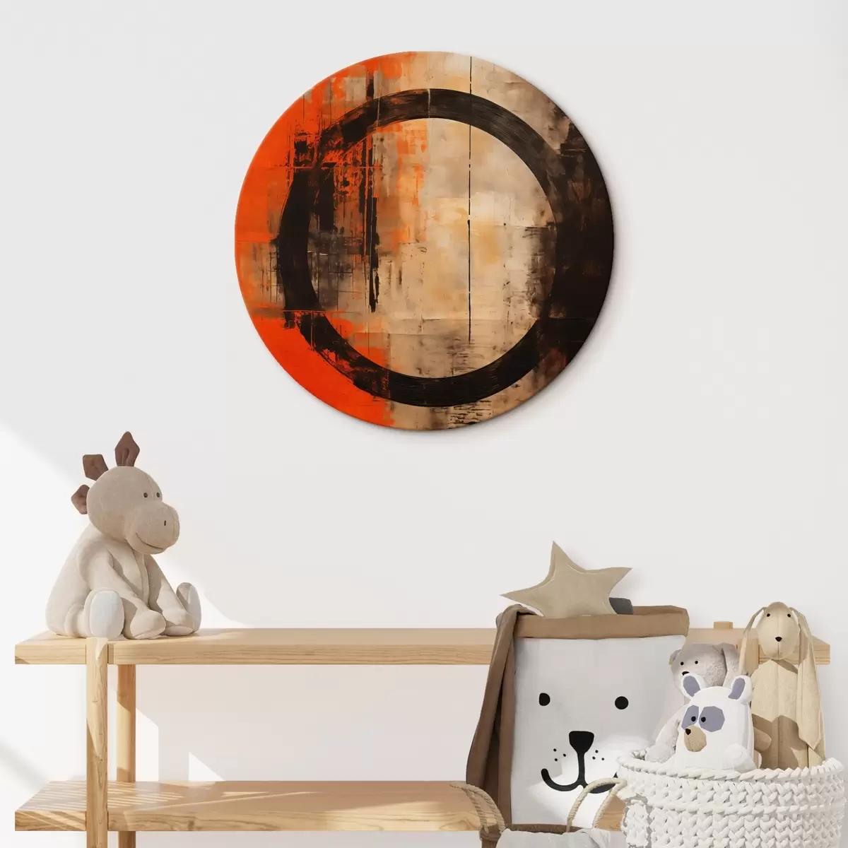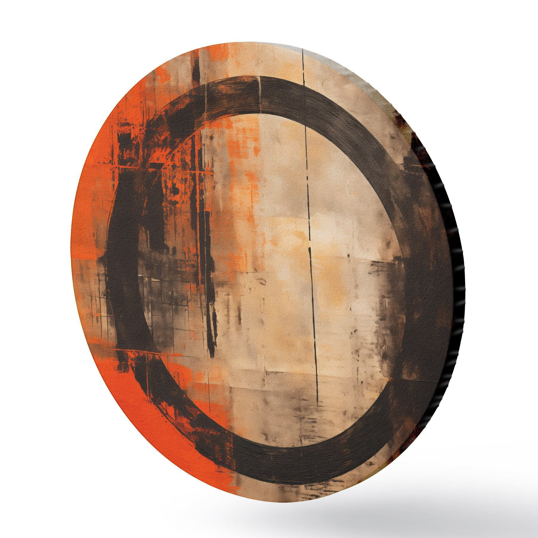 Okrągłe obrazy Abstrakcja z dużym czarnym okręgiem i ciepłymi teksturami r46528