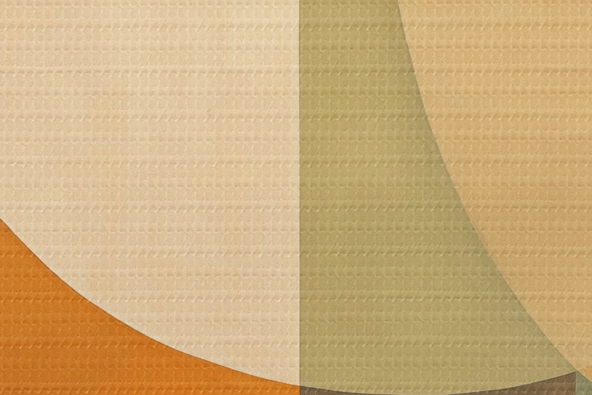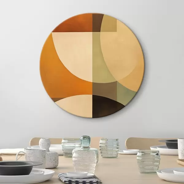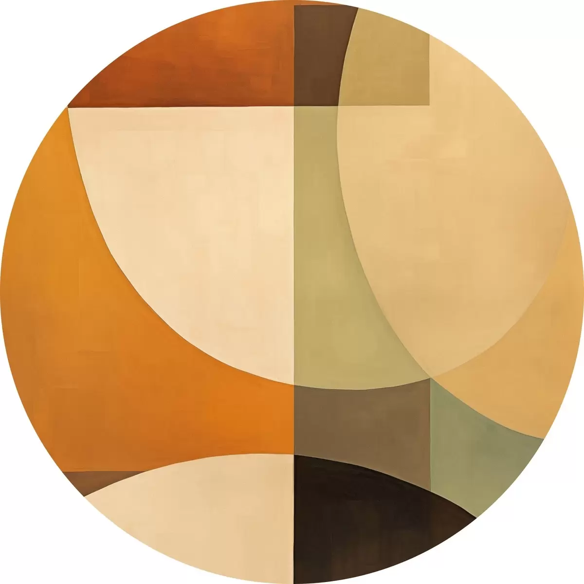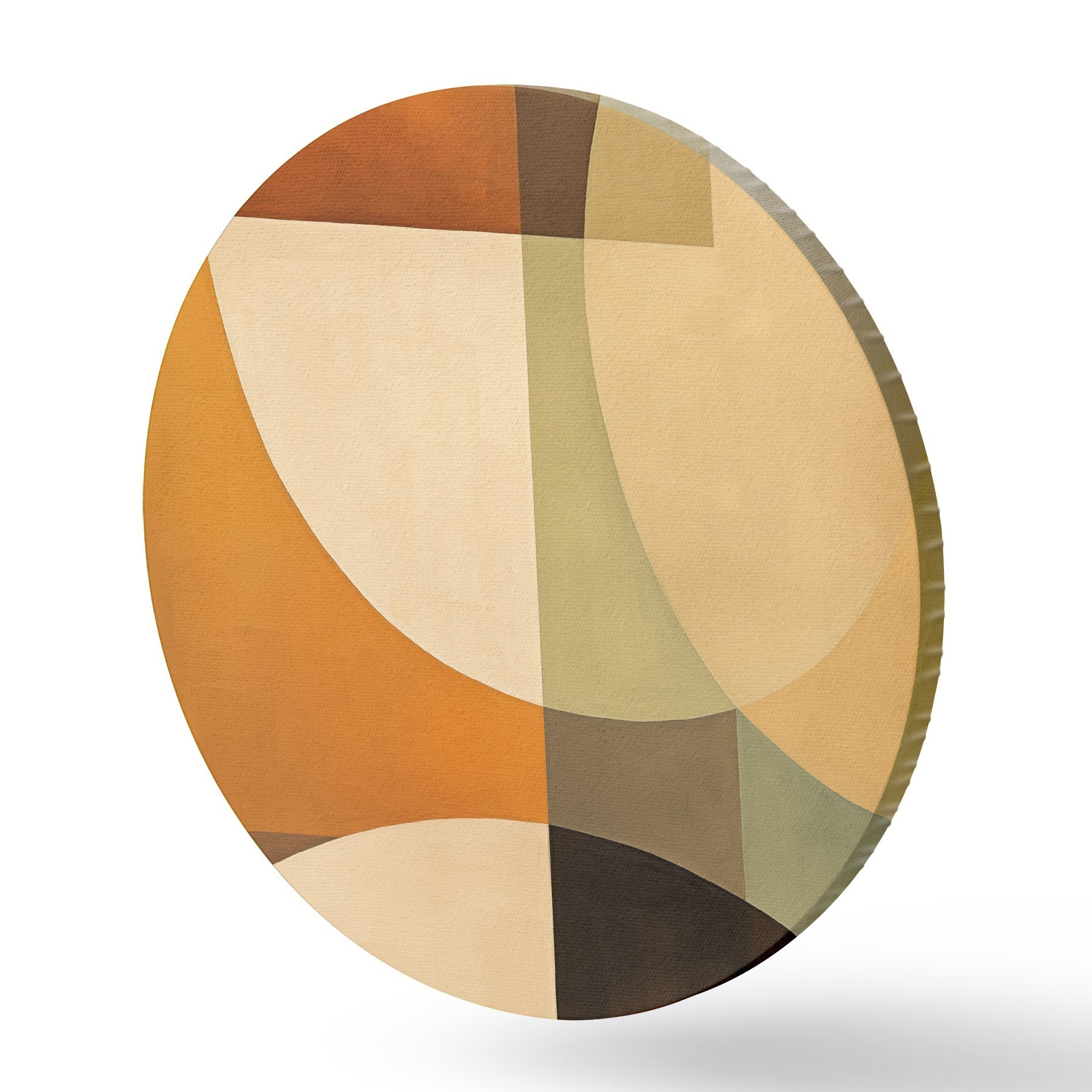 Okrągły obraz Duże, przecinające się formy w odcieniach terakoty i oliwki Nr r46533