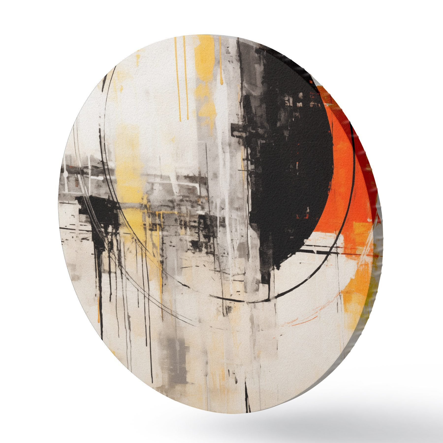 Okrągły obraz Jednokolorowe pomarańczowe koło z teksturowanymi kroplami Nr r46536