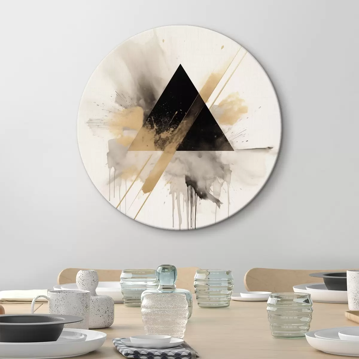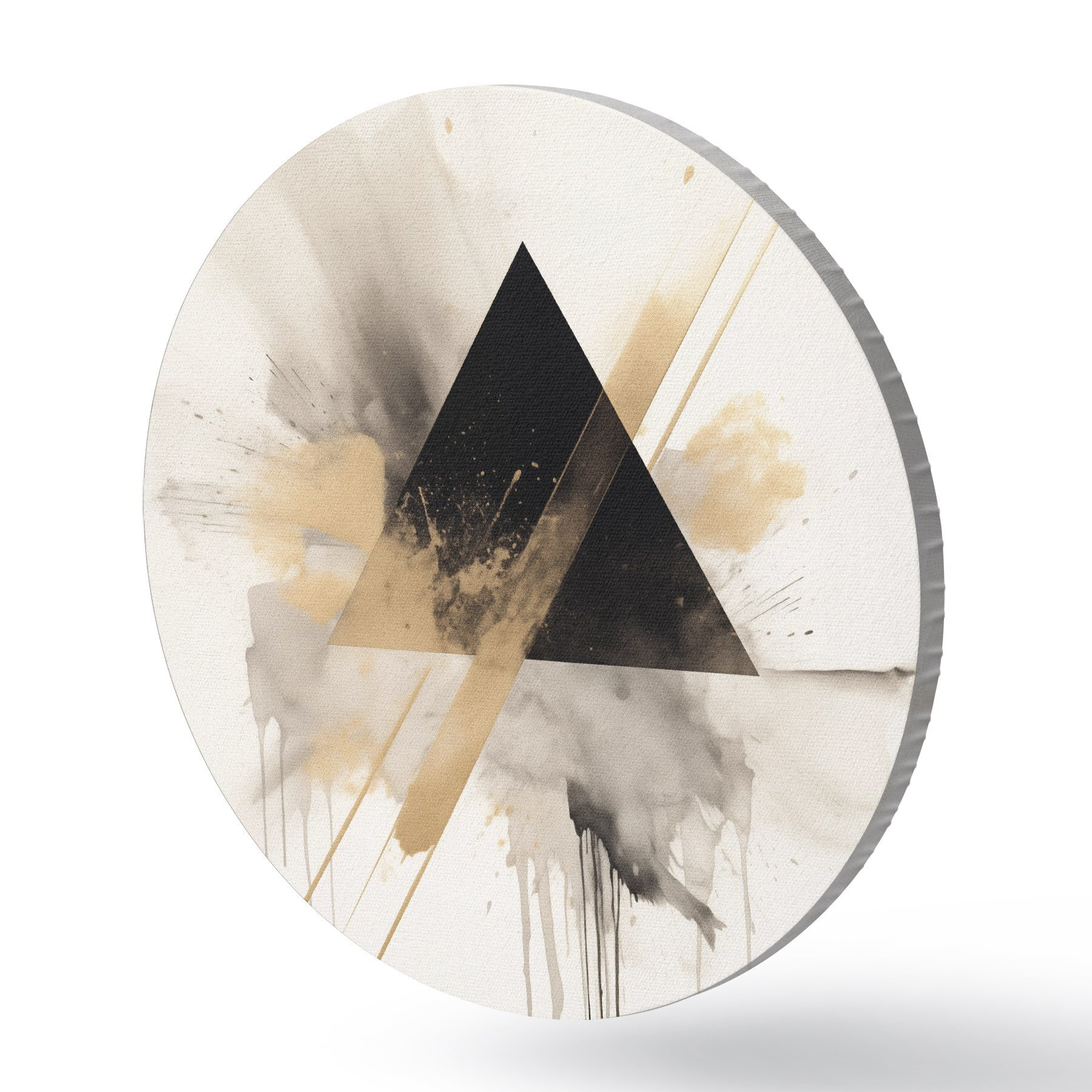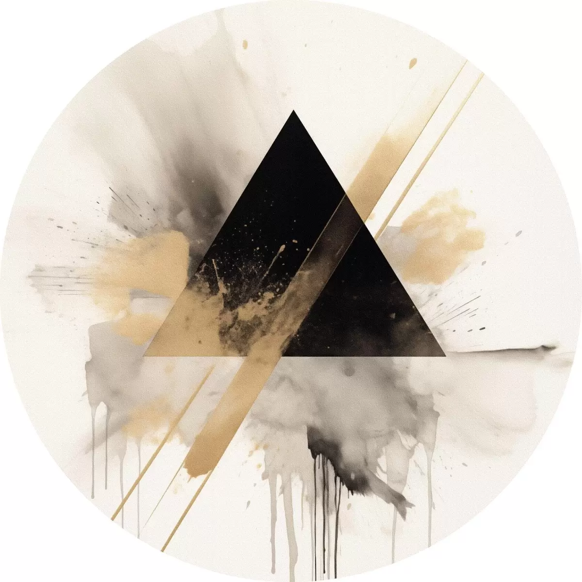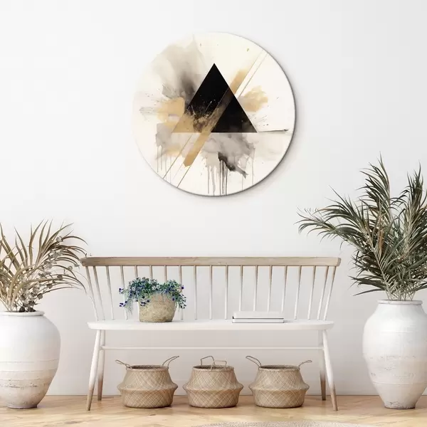 Okrągły obraz Geometria: czarny trójkąt z jasnymi plamami i liniami Nr r46540