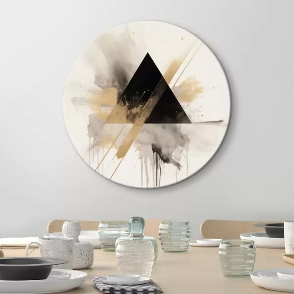Okrągłe obrazy Geometria: czarny trójkąt z jasnymi plamami i liniami r46540
