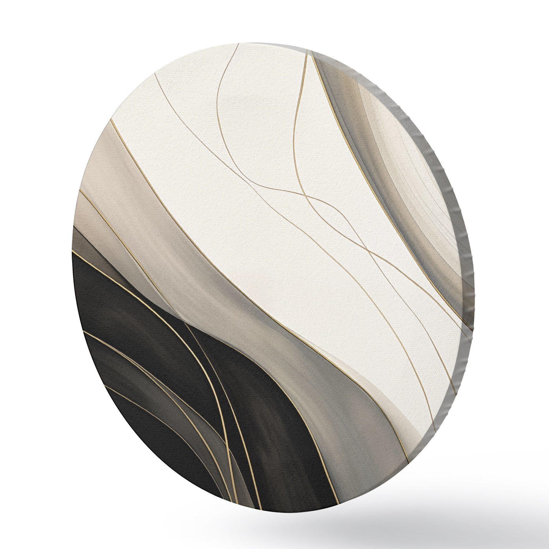 Okrągłe obrazy Fale w kolorze czarnym i beżowym z delikatnymi ochrowymi liniami r46541
