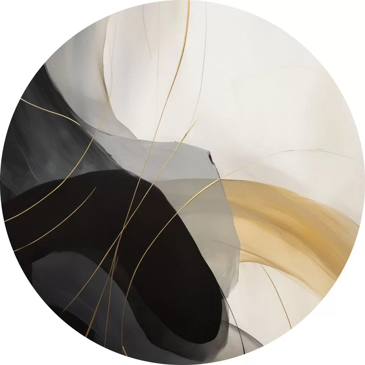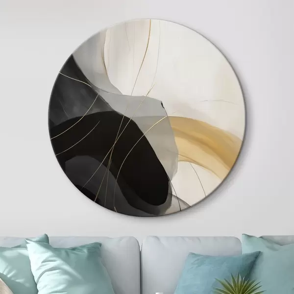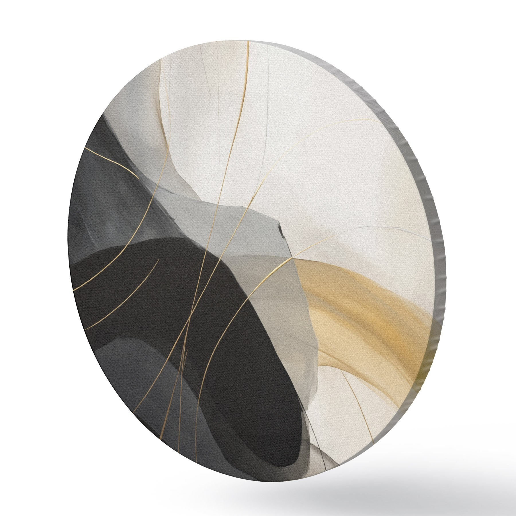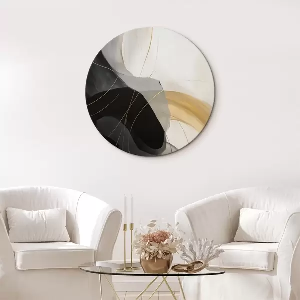 Okrągły obraz Delikatne krzywizny w kolorze czarnym i beżowym z ciepłym akcentem Nr r46542