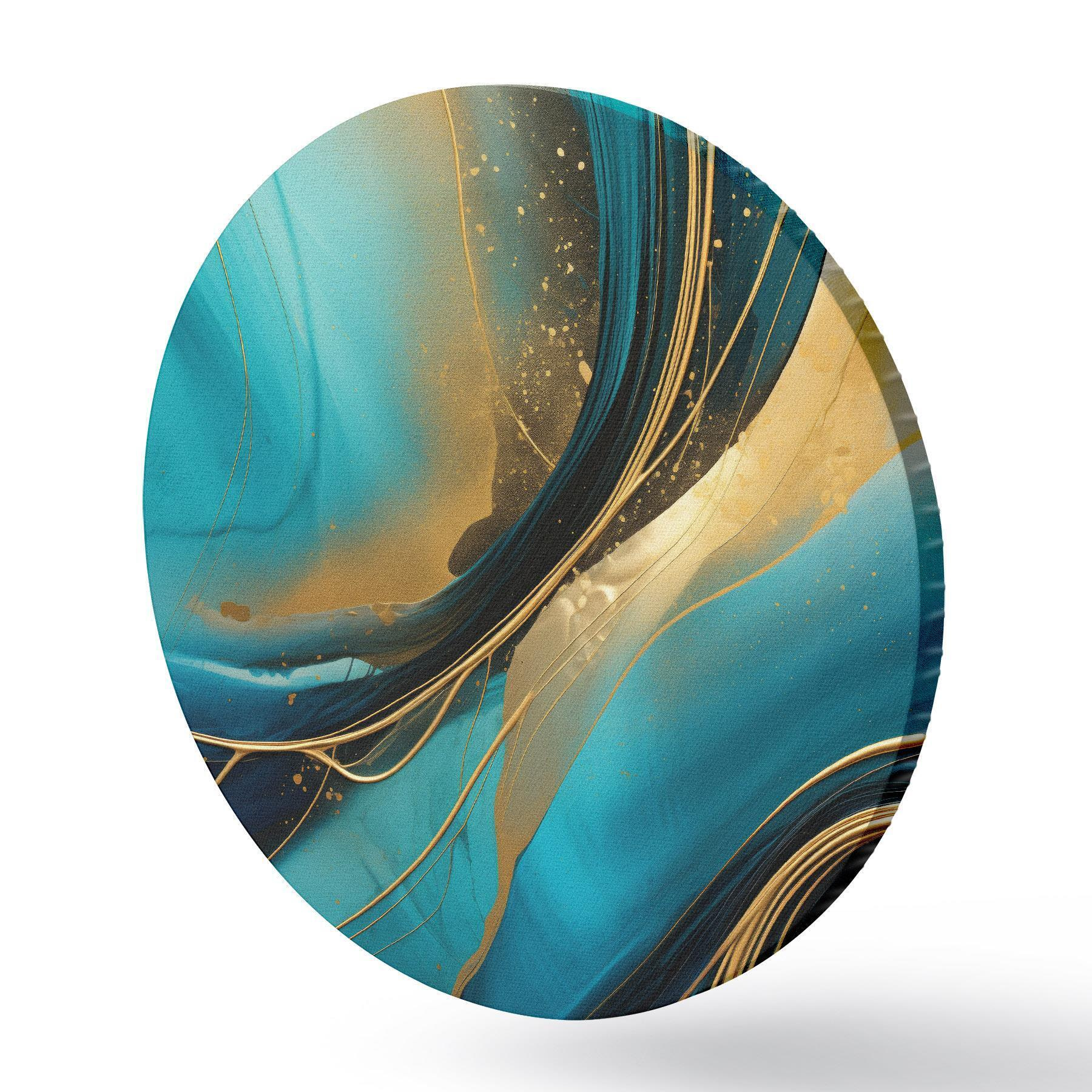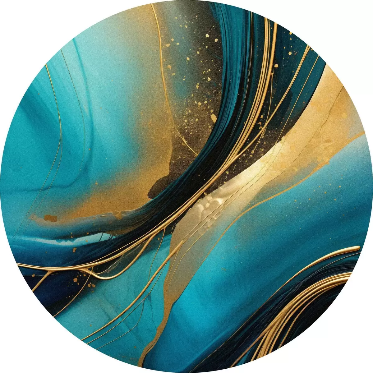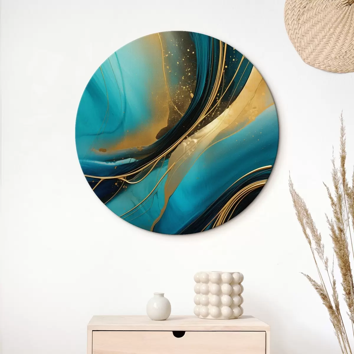 Okrągłe obrazy Turkusowy strumień z cienkimi ochrowymi nitkami r46543