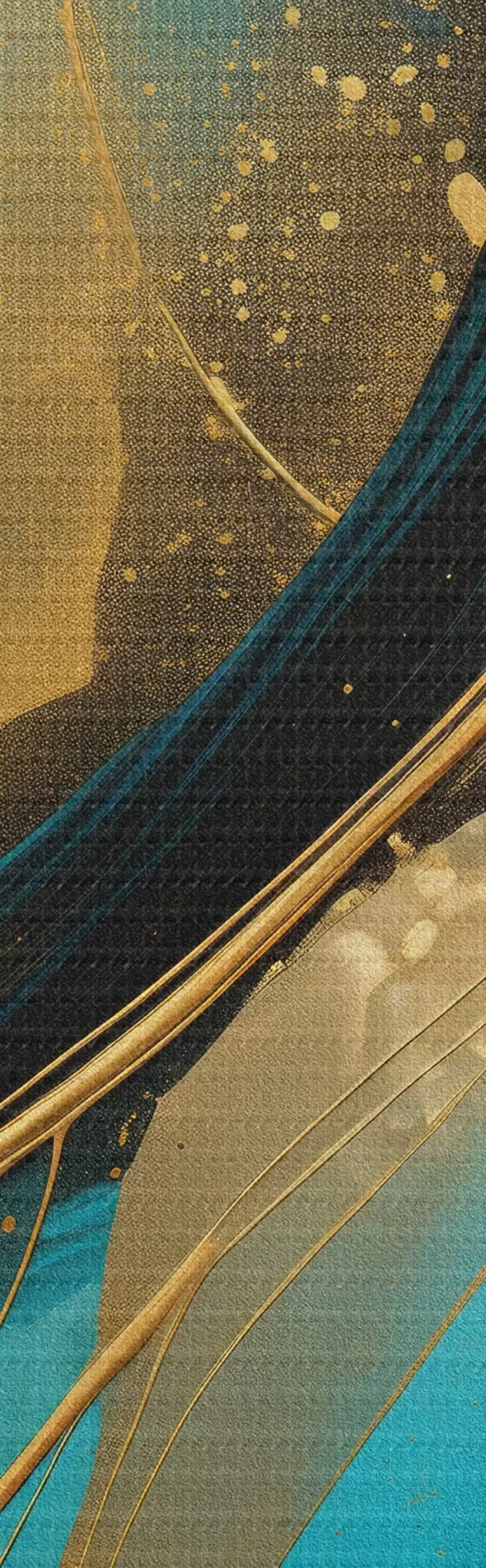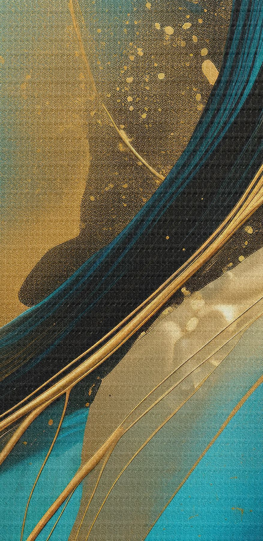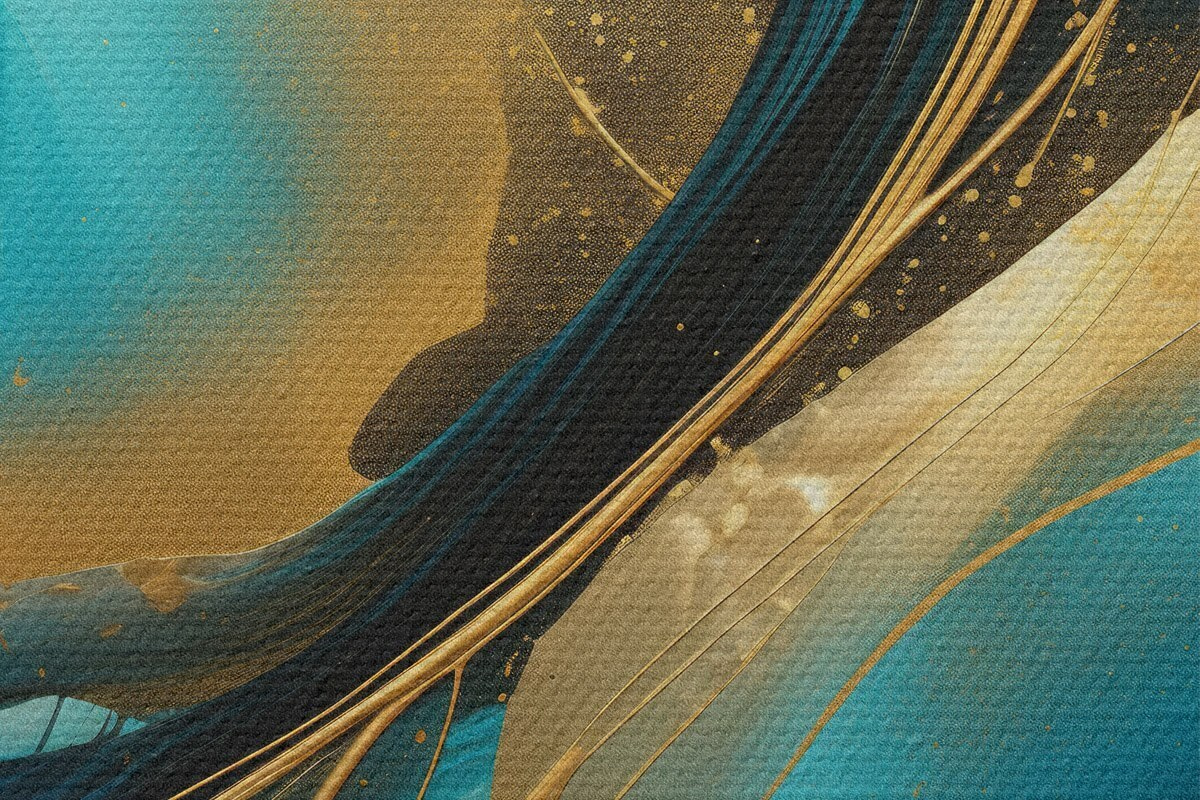 Okrągły obraz Turkusowy strumień z cienkimi ochrowymi nitkami Nr r46543