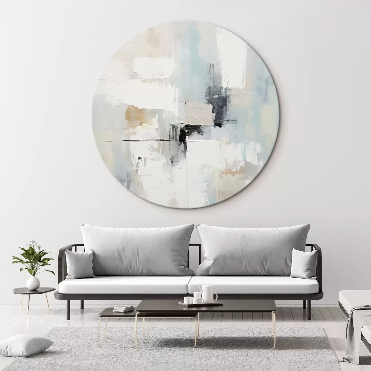 Okrągłe obrazy Jasny abstrakcyjny wzór z czarnymi akcentami r46548
