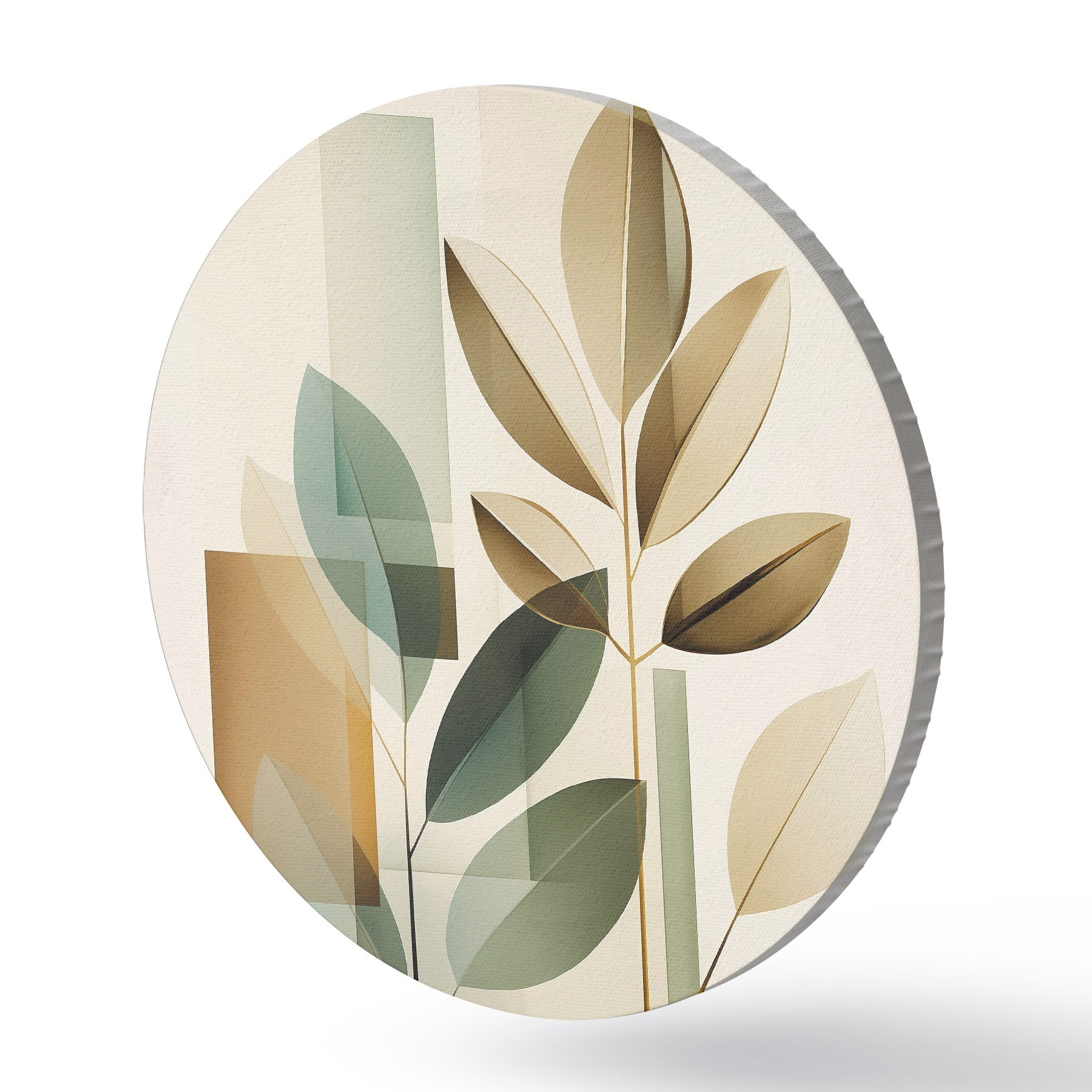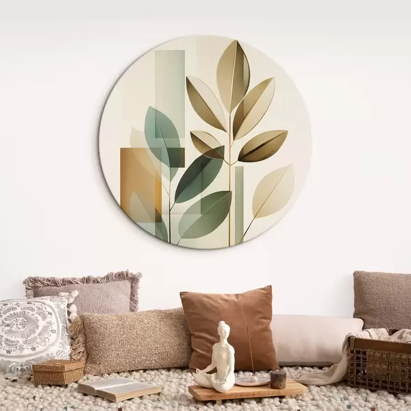Okrągłe obrazy Geometryczna abstrakcja z liśćmi r46581