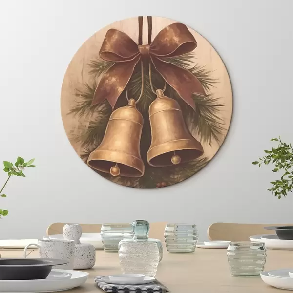 Okrągłe obrazy Vintage dekoracja świąteczna z dwoma dzwoneczkami i kokardką r46626