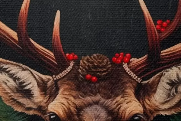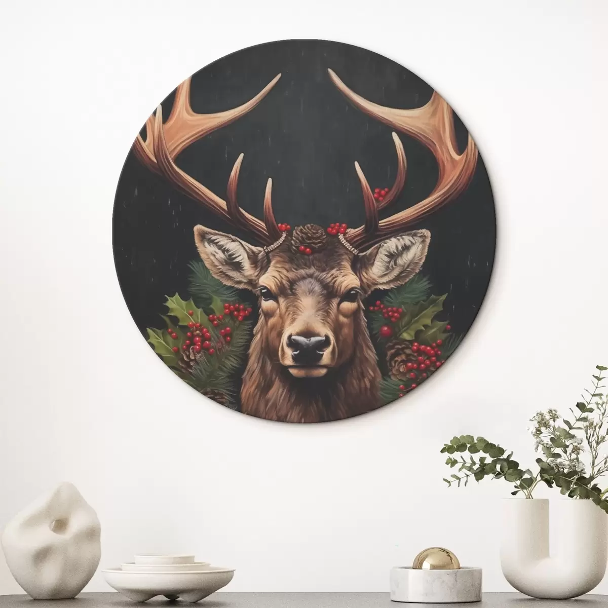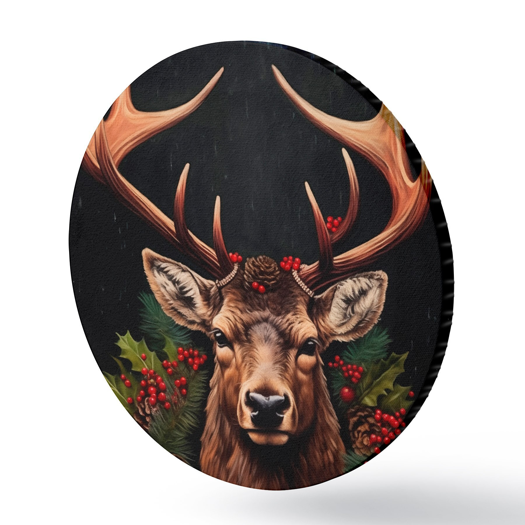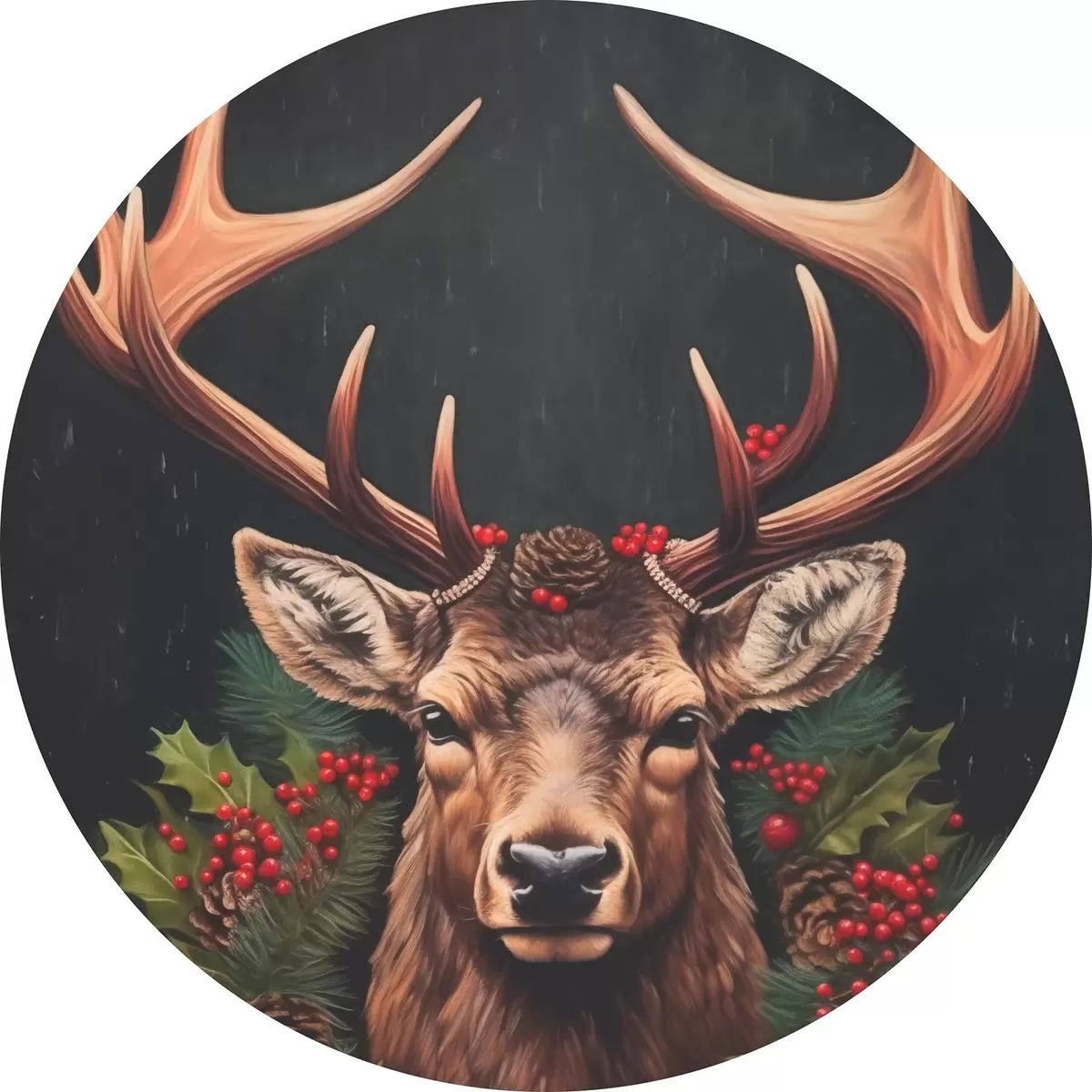 Okrągły obraz Portret jelenia z wieńcem bożonarodzeniowym Nr r46628
