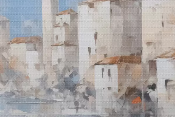 Okrągłe obrazy Abstrakcyjne domy nad zatoką imitacja obrazu r46673