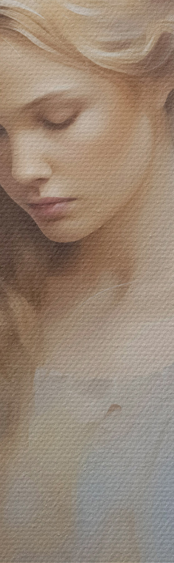 Drobny splot nici na tym płótnie przypomina powierzchnię profesjonalnych płócien artystycznych.