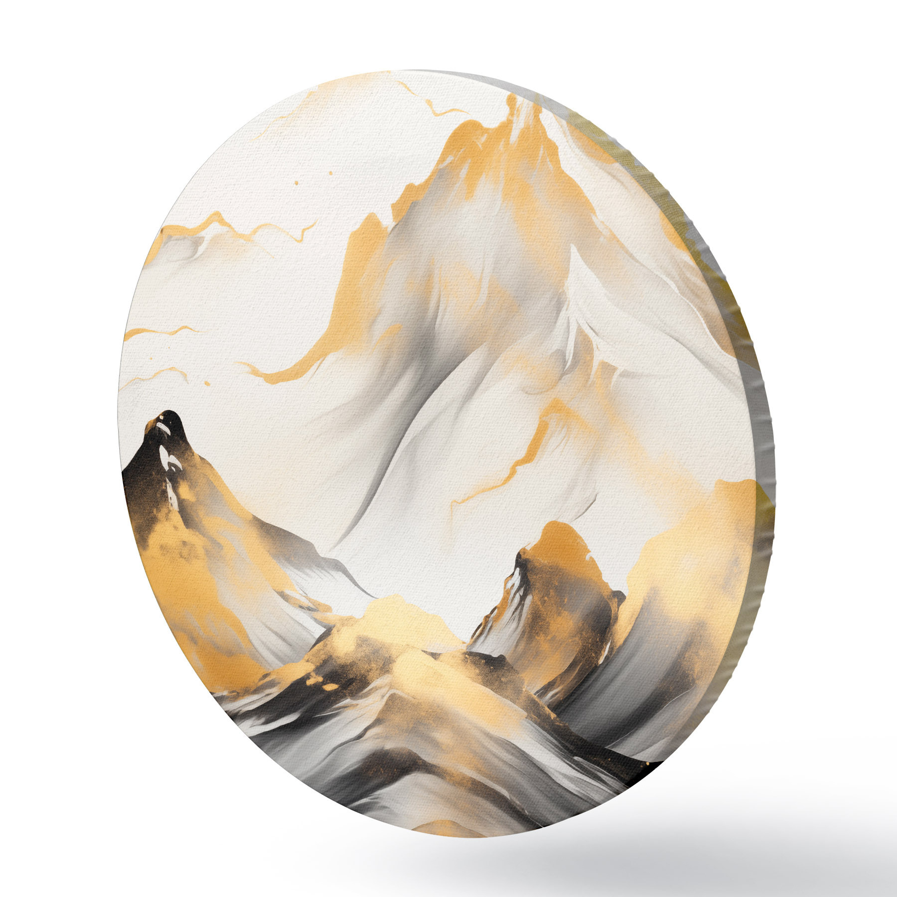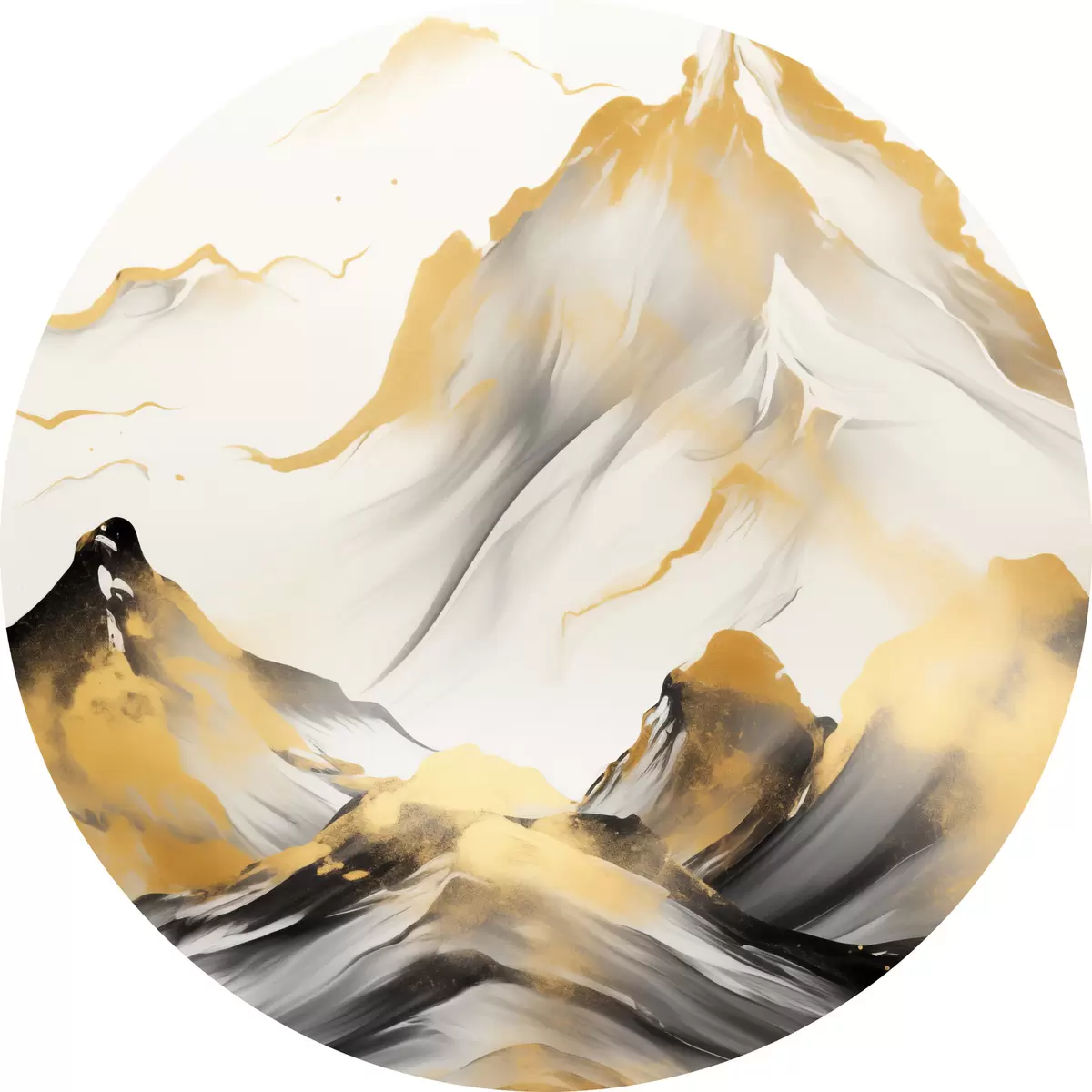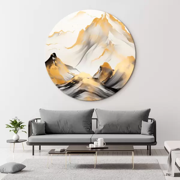 Okrągły obraz Teksturowane żółto-czarne góry ze śnieżnymi szczytami, styl malarstwa tuszem, minimalistyczny łańcuch górski Nr r46683