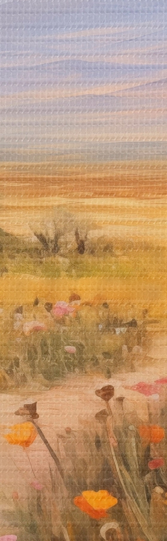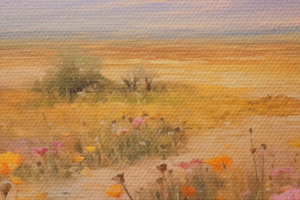 Drobny splot nici na tym płótnie przypomina powierzchnię profesjonalnych płócien artystycznych.