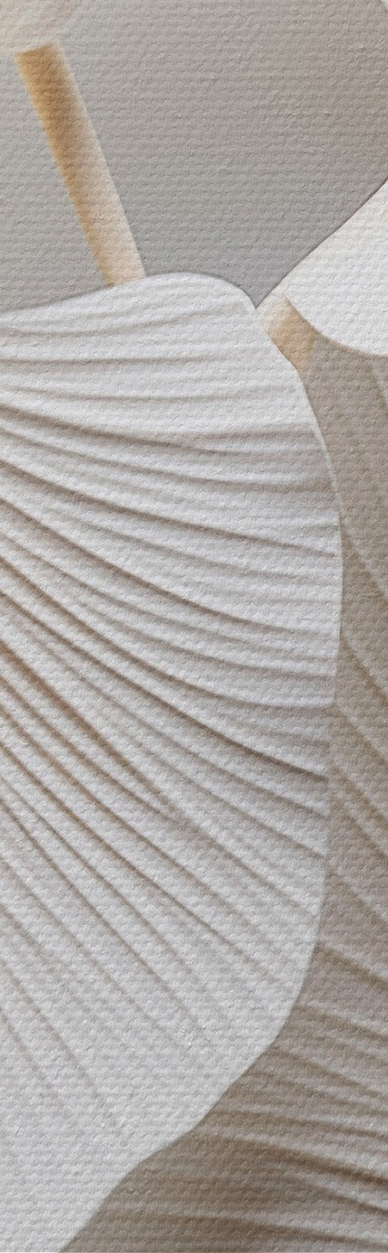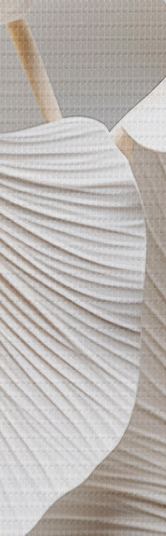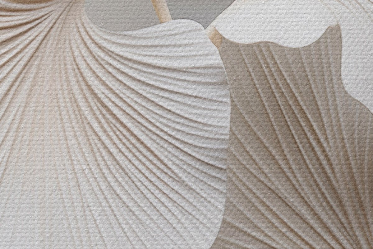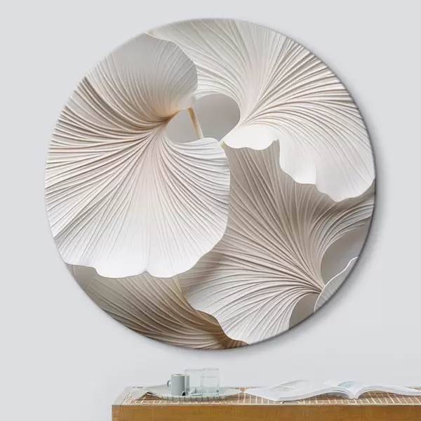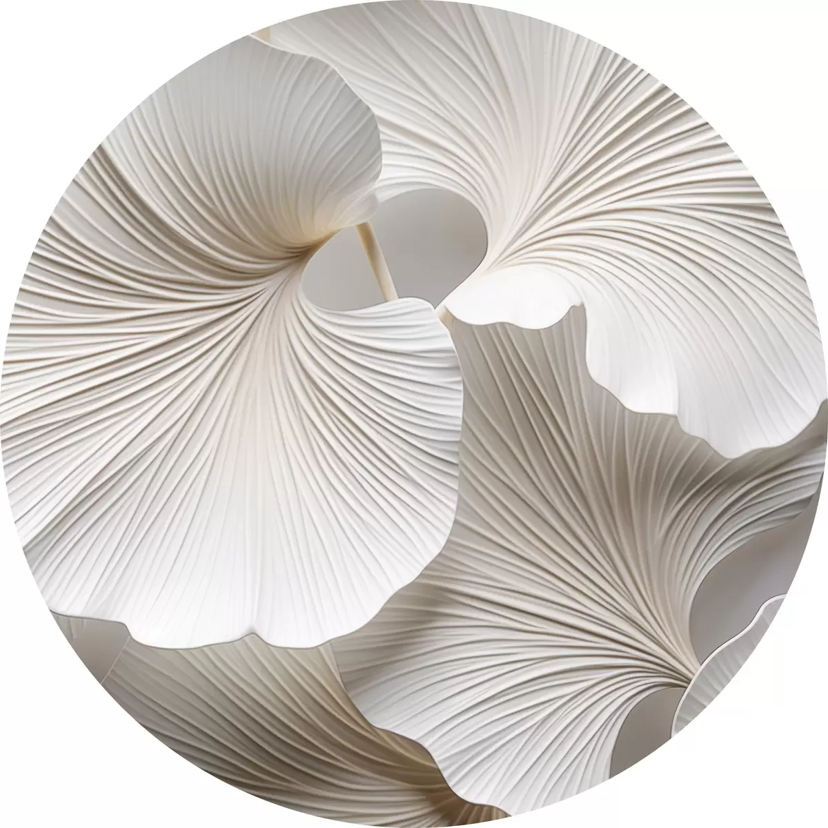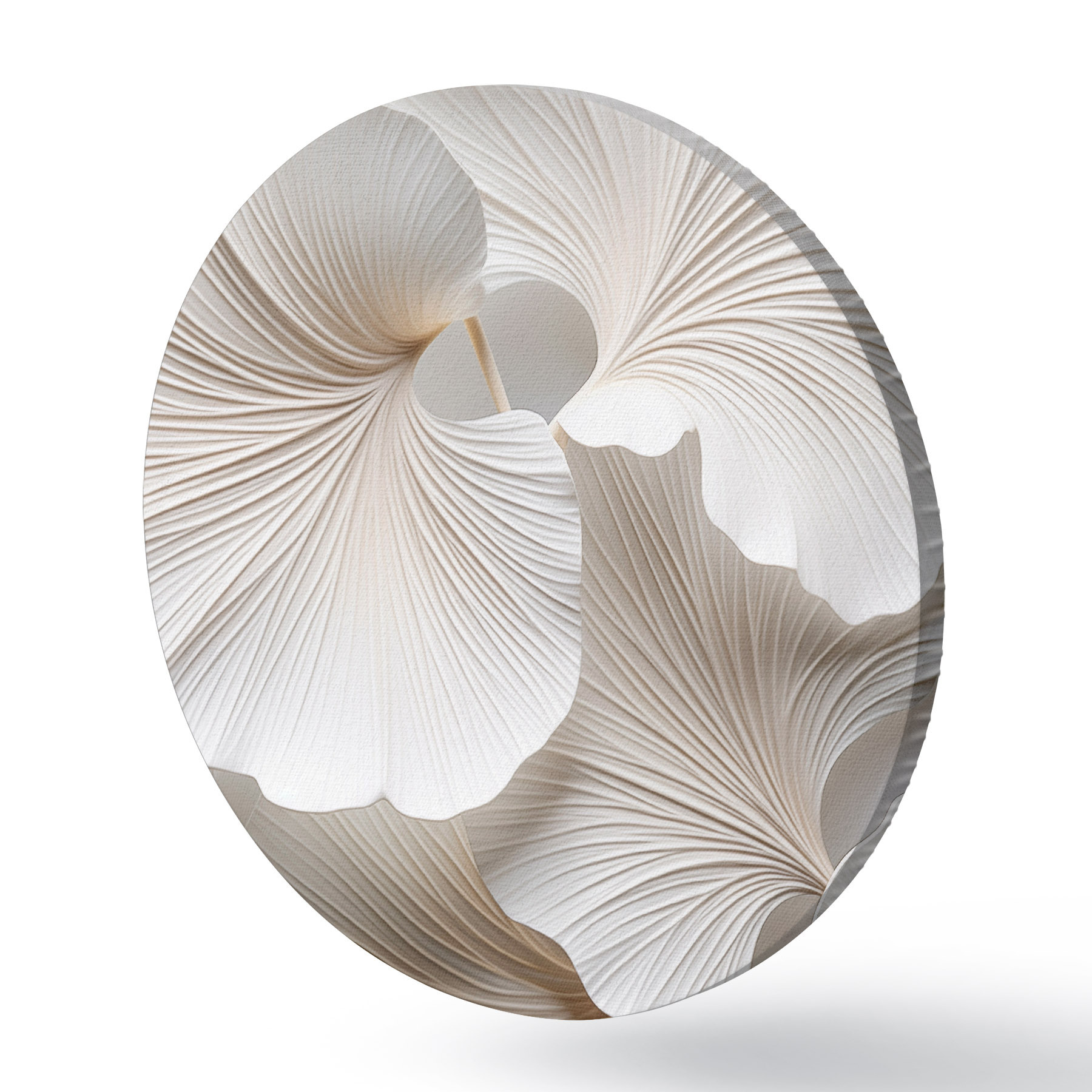 Okrągłe obrazy Białe liście miłorzębu japońskiego z wyraźnymi żyłkami, delikatnym oświetleniem, eleganckim i minimalistycznym wzorem. r46705
