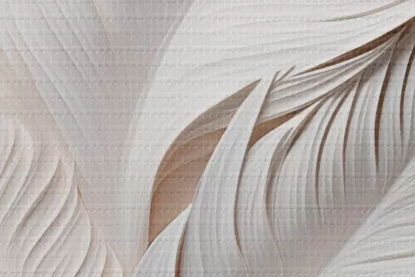 Okrągły obraz Białe liście z misternymi detalami, tworzące efekt tekstury i warstwowości, minimalistyczna sztuka Nr r46706