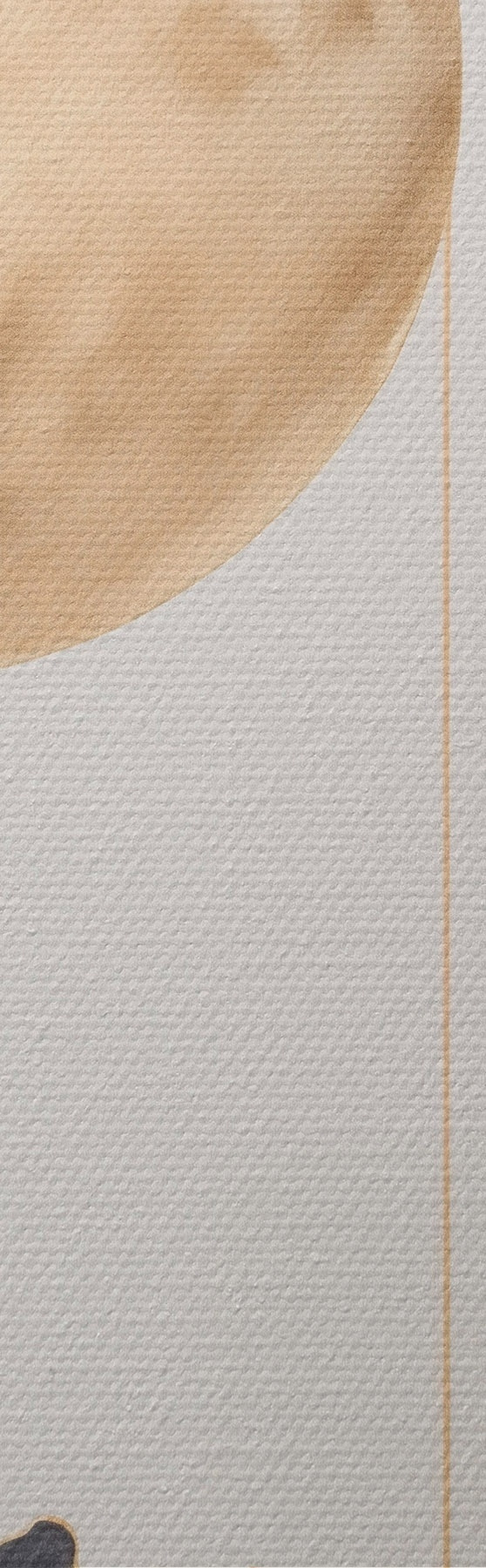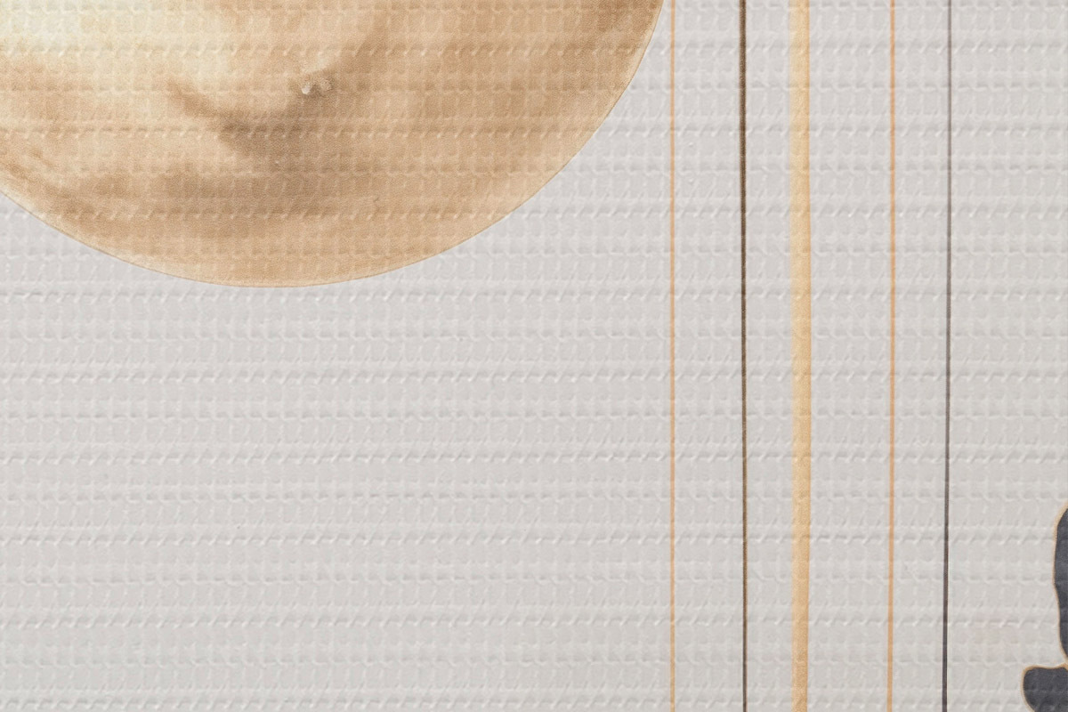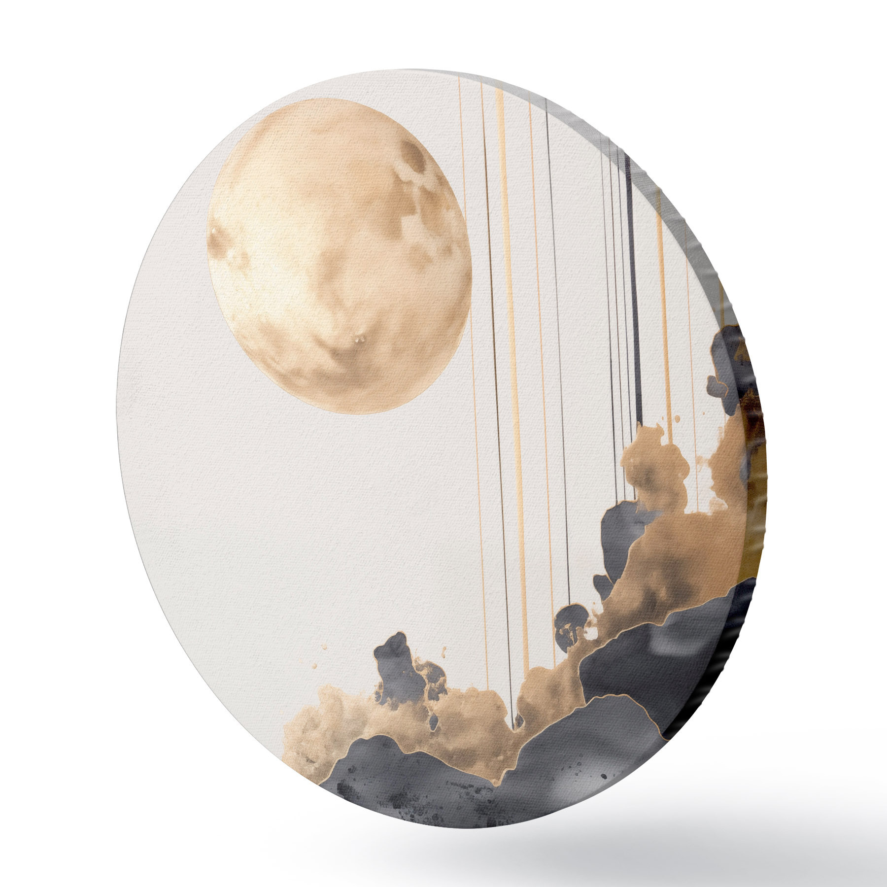 Okrągłe obrazy Pełnia księżyca z czarnymi i teksturowanymi żółtymi chmurami, pionowymi liniami, abstrakcyjnym stylem, minimalistyczna i nowoczesna. r46707