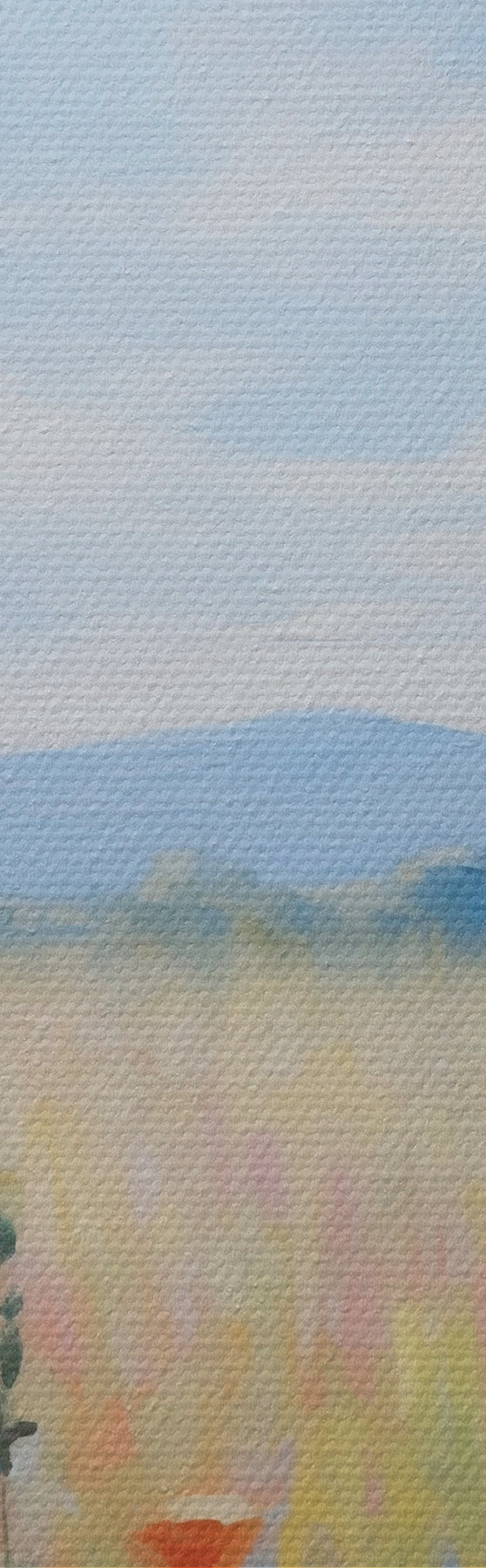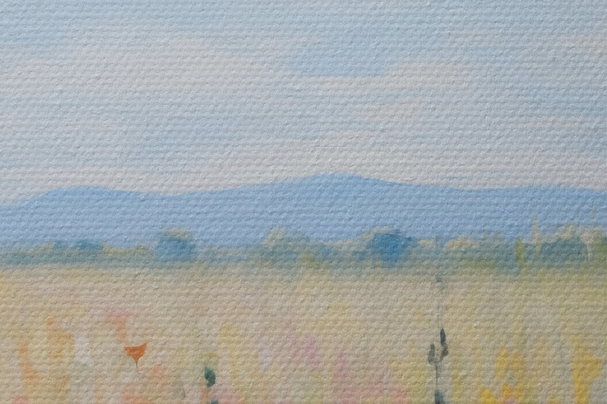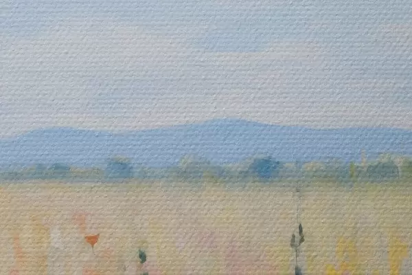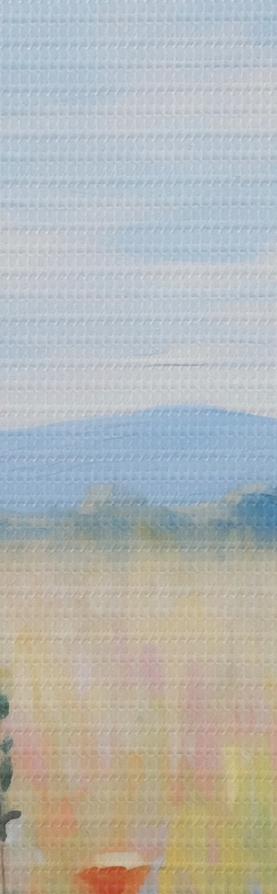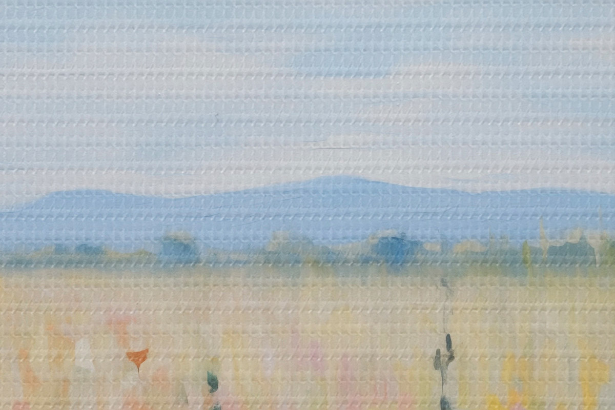 Drobny splot nici na tym płótnie przypomina powierzchnię profesjonalnych płócien artystycznych.