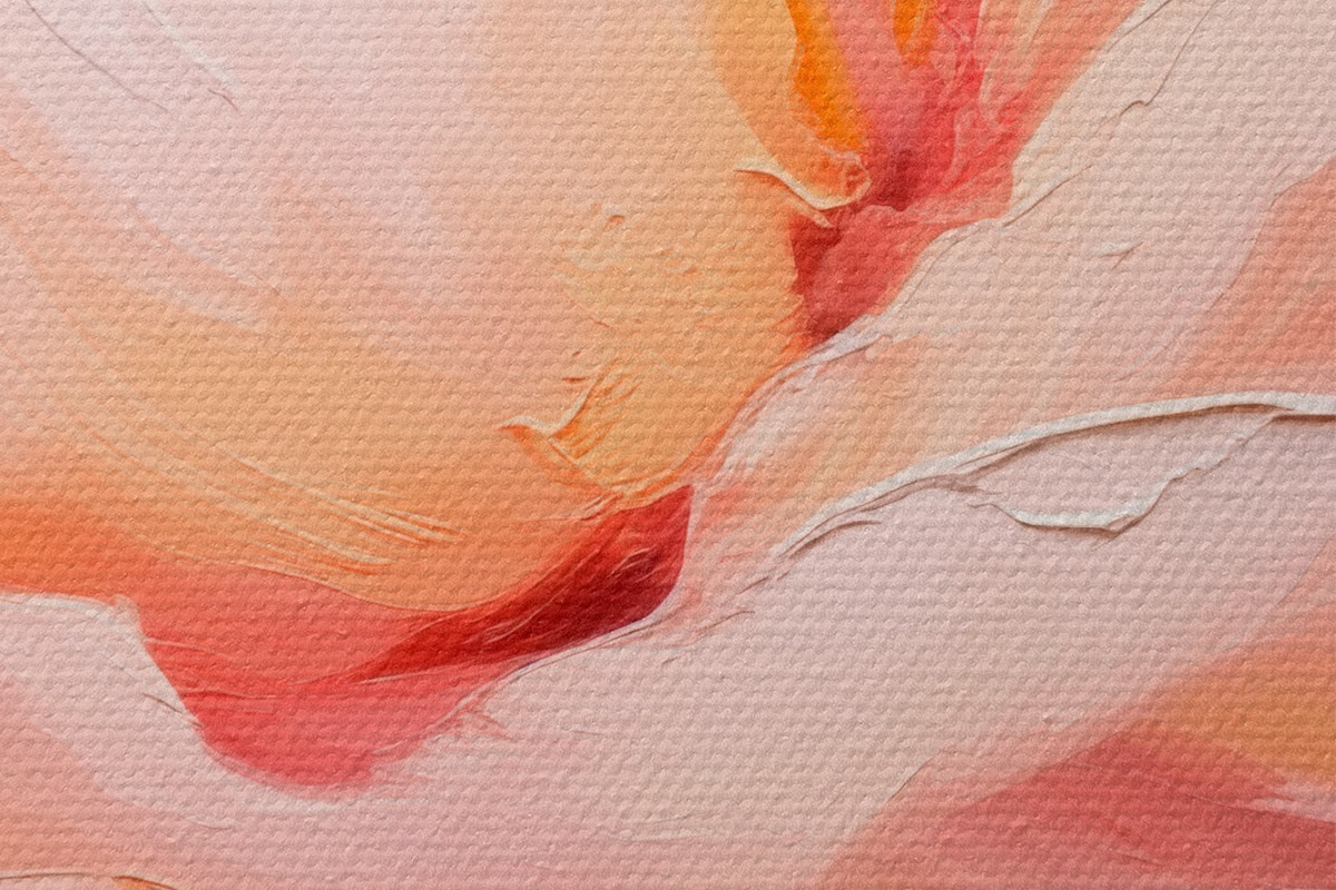 Drobny splot nici na tym płótnie przypomina powierzchnię profesjonalnych płócien artystycznych.