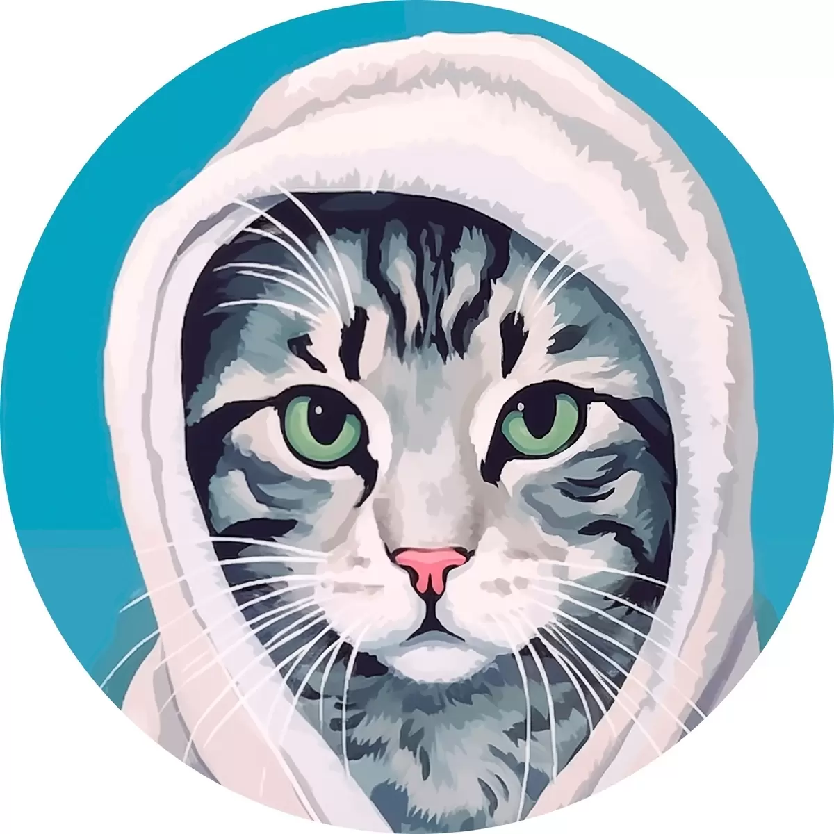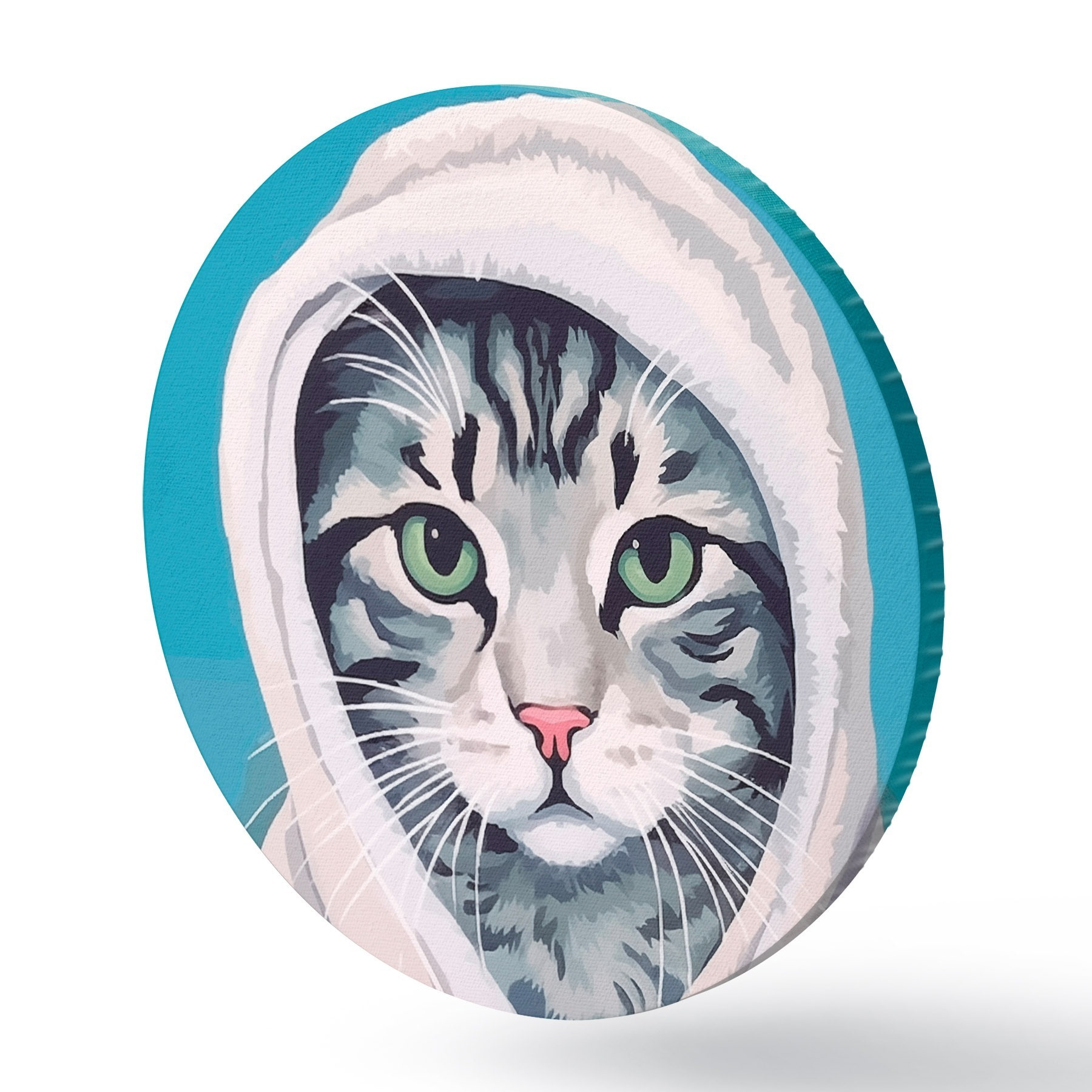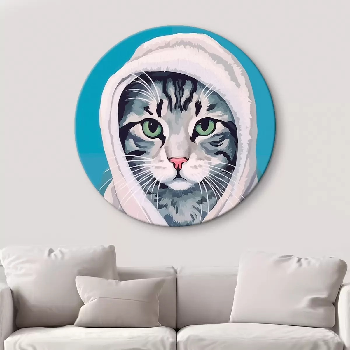 Okrągły obraz Pasiasty kot w białym ręczniku Nr r46740