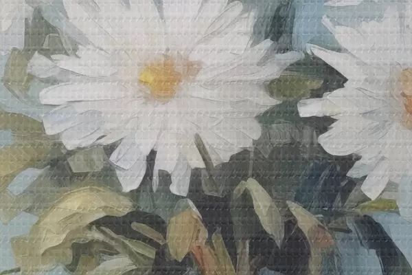 Drobny splot nici na tym płótnie przypomina powierzchnię profesjonalnych płócien artystycznych.