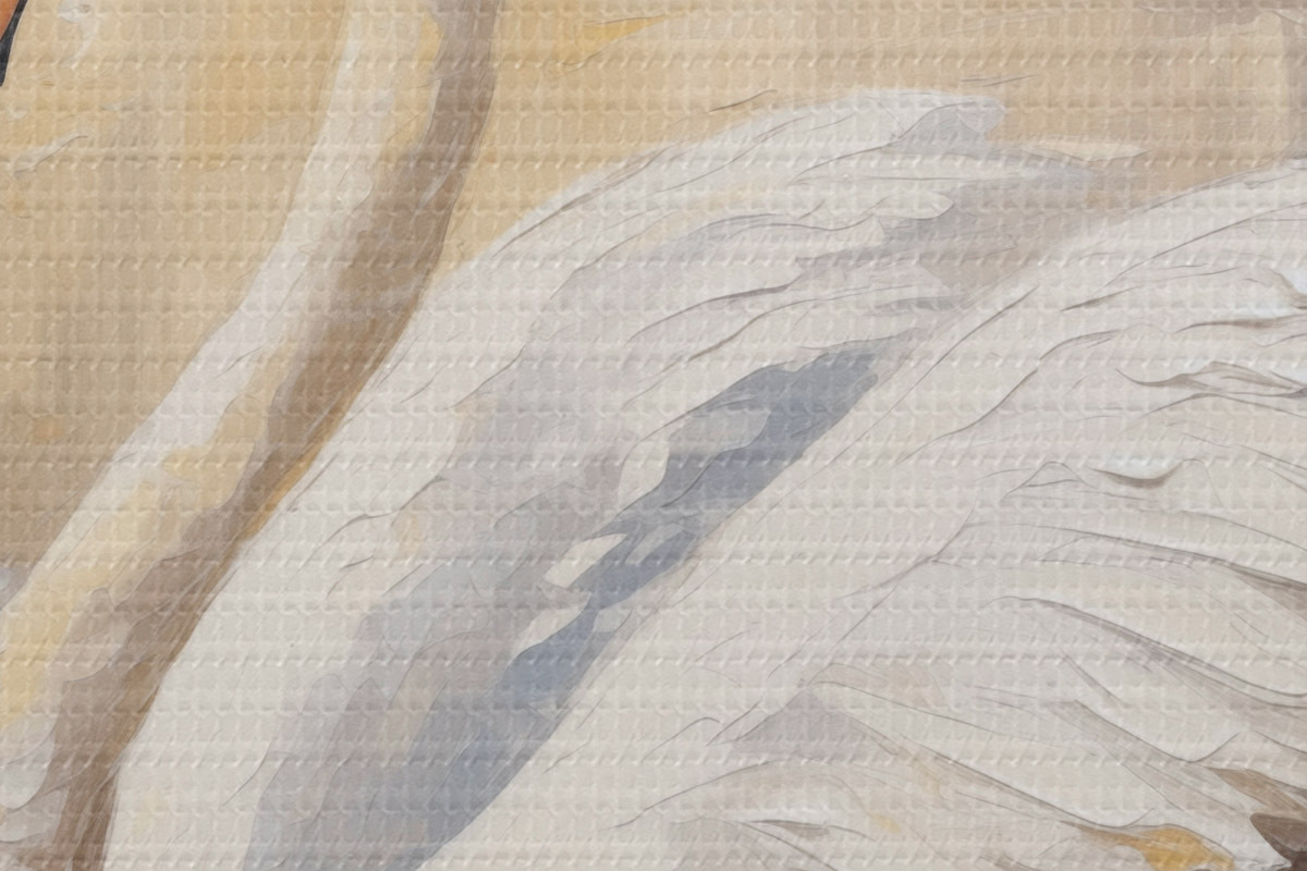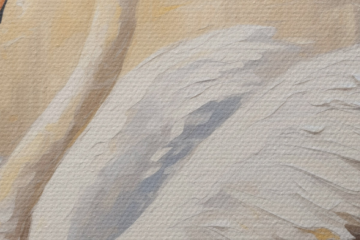 Drobny splot nici na tym płótnie przypomina powierzchnię profesjonalnych płócien artystycznych.