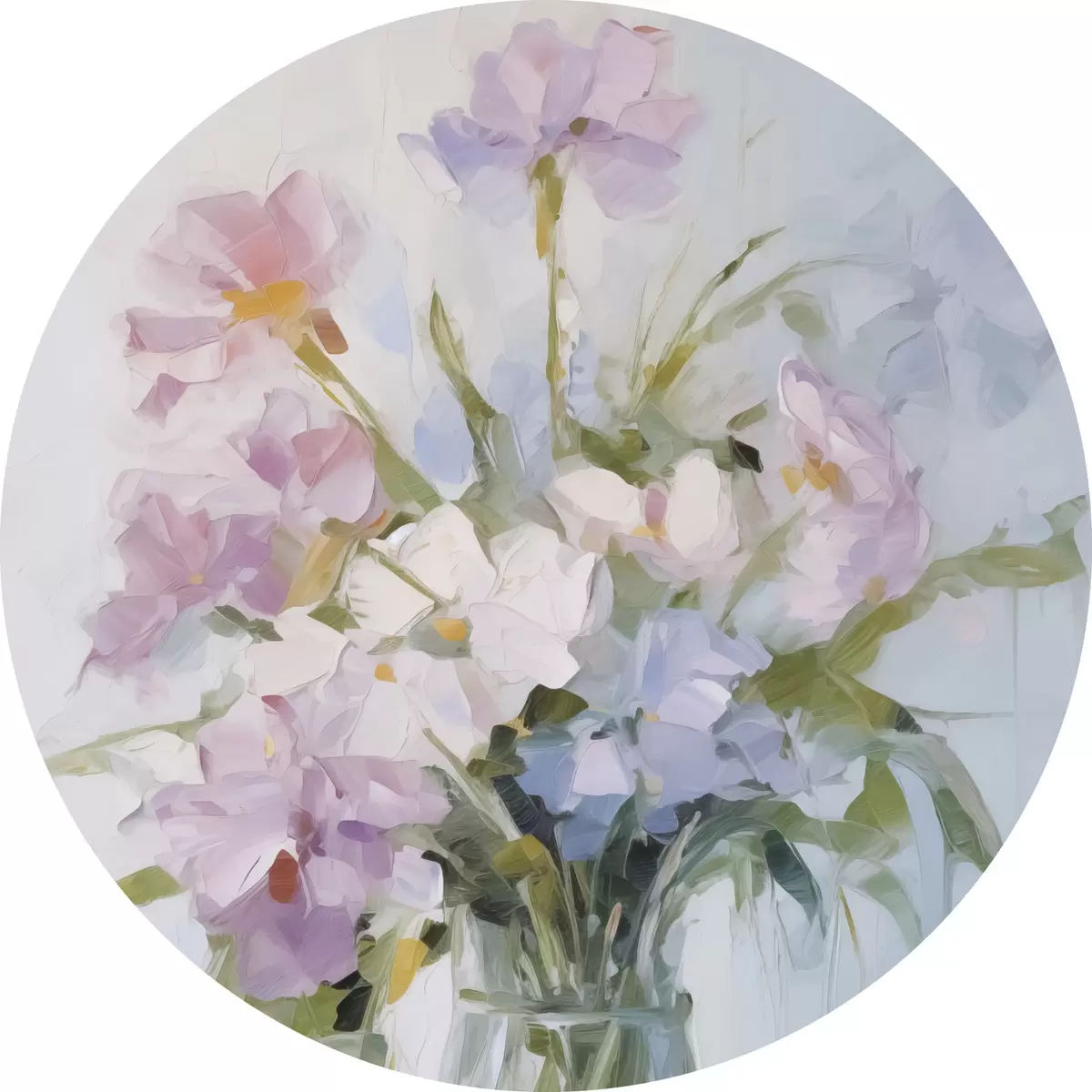 Okrągły obraz Bukiet kwiatów w wazonie imitującym obraz Nr r46751