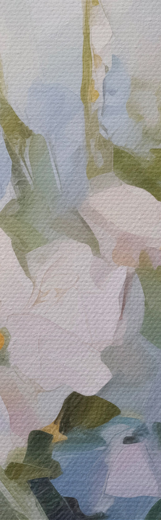 Drobny splot nici na tym płótnie przypomina powierzchnię profesjonalnych płócien artystycznych.