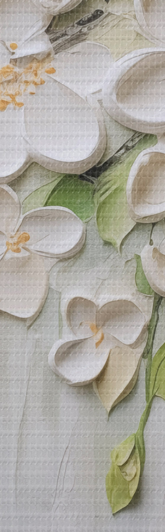 Drobny splot nici na tym płótnie przypomina powierzchnię profesjonalnych płócien artystycznych.