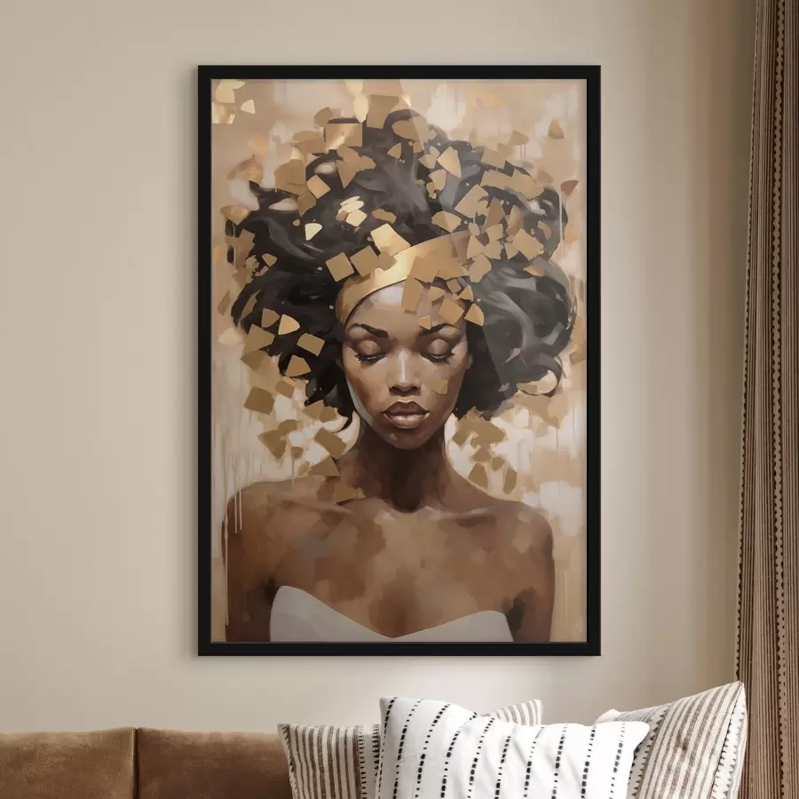 Młoda kobieta z czarną i złotą farbą na akwareli twarzy