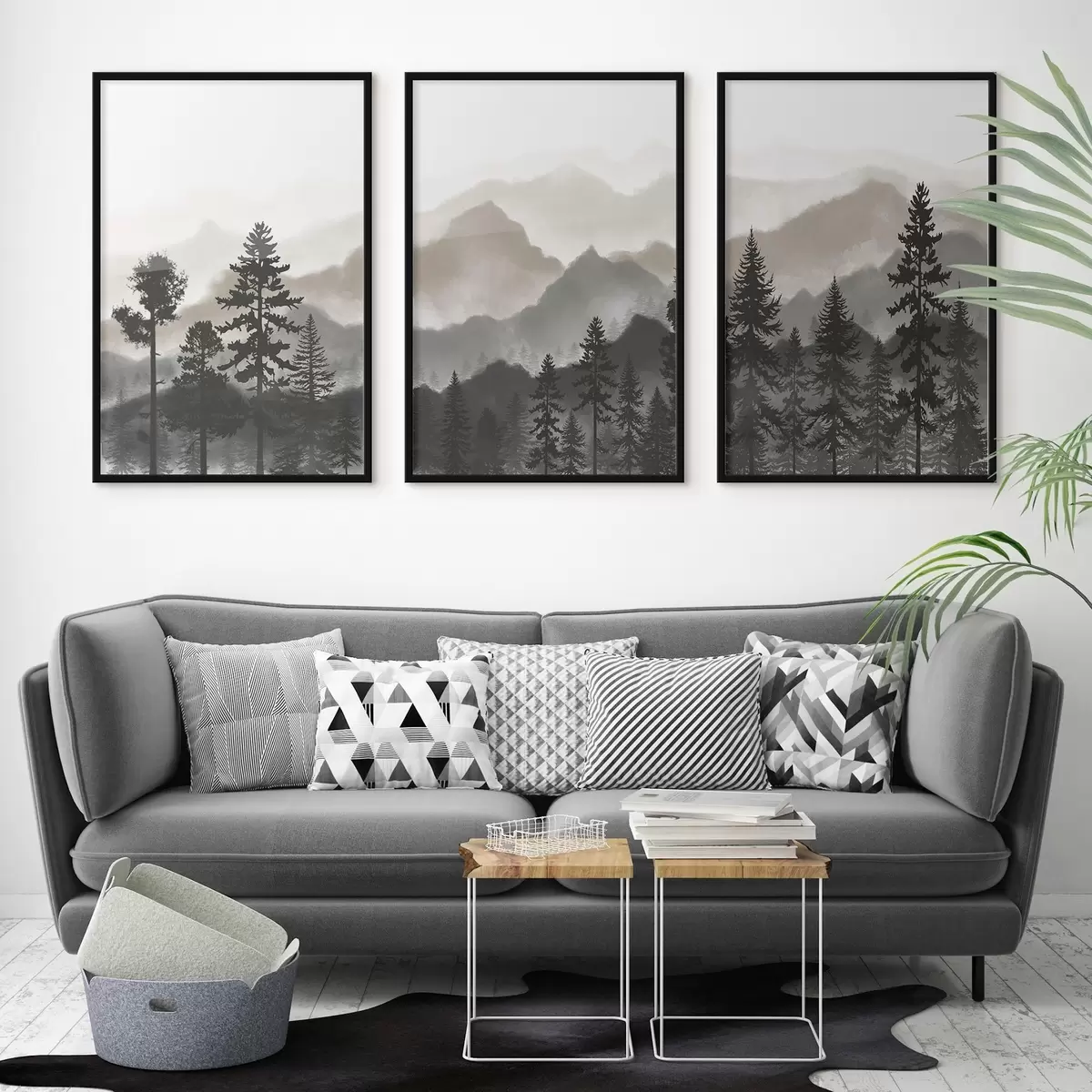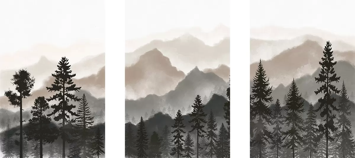 Plakat Spokojny górski krajobraz z drzewami d00244v1