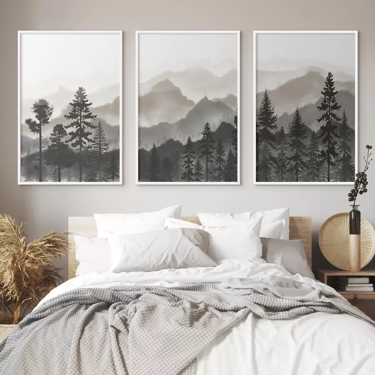 Poster Spokojny górski krajobraz z drzewami Nr d00244v1