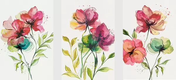 Poster Delikatne kwiaty namalowane akwarelą z plamami farby Nr d00340