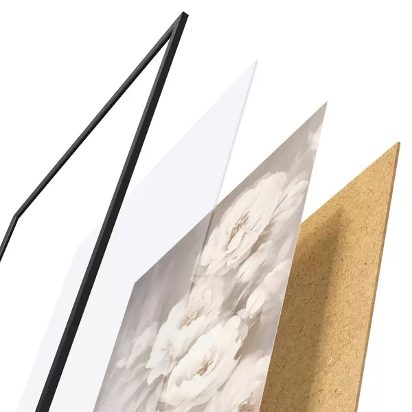 Plakat składa się z ramy, pleksi, wydrukowanego obrazu i podkładu z płyty wiórowej. Plakat można natychmiast zawiesić na ścianie dzięki uchwytom z tyłu.