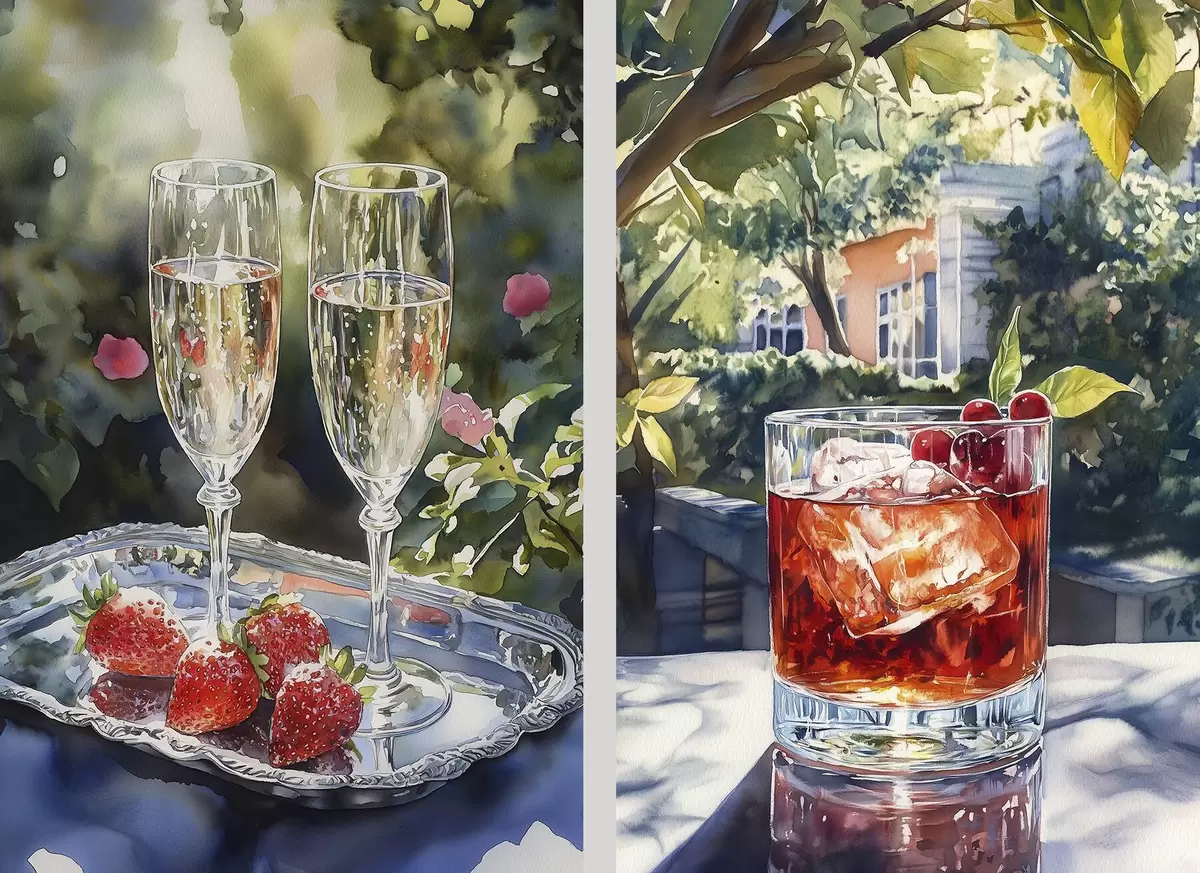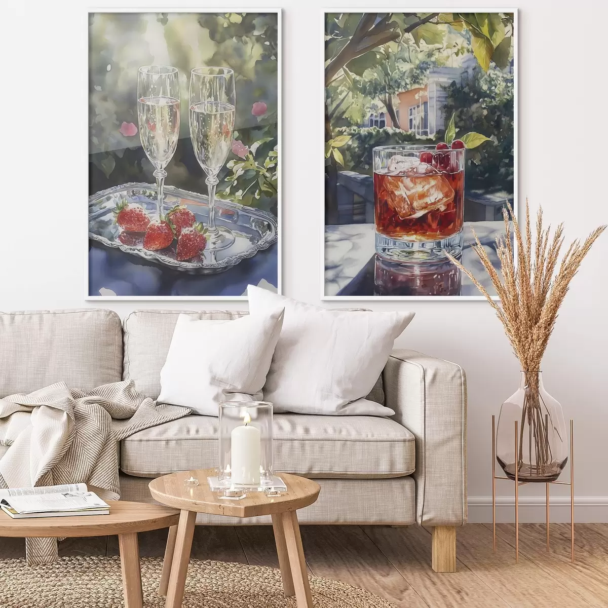 Poster Pyszne koktajle z jagodami, styl akwareli, estetyka, letnia natura Nr d00415