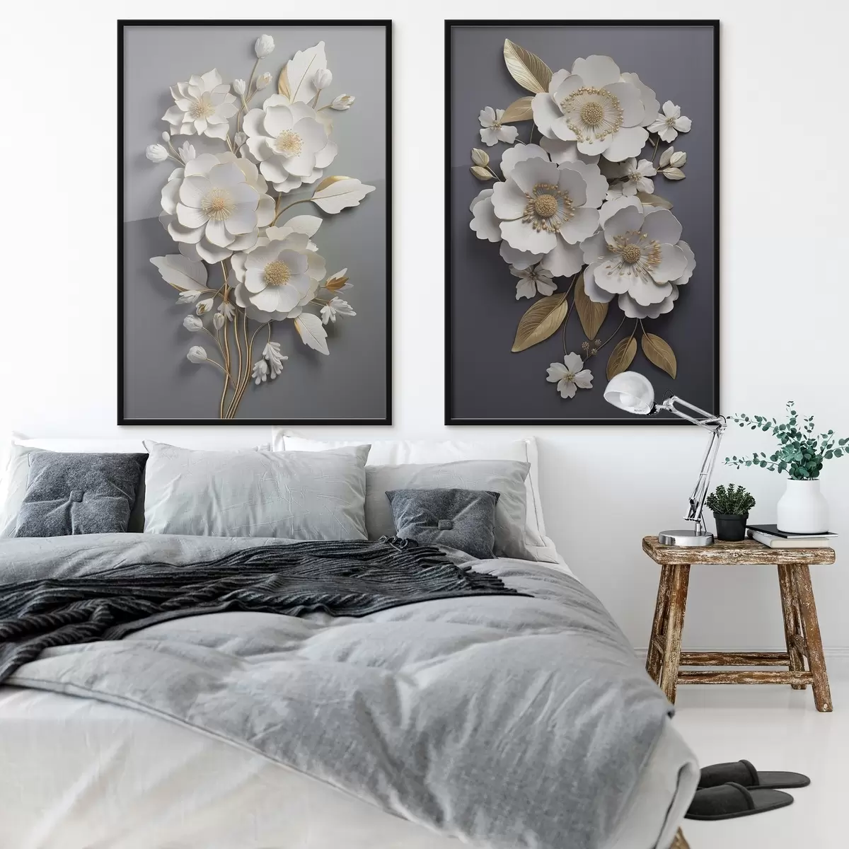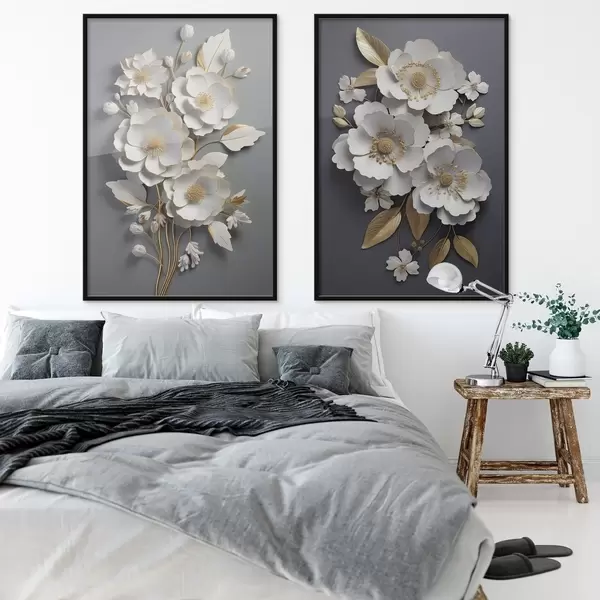 Poster Kompozycja gałązek kwiatowych na ciemnym tle Nr d00423