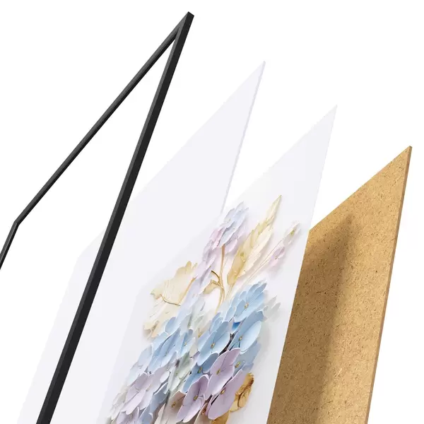 Plakat składa się z ramy, pleksi, wydrukowanego obrazu i podkładu z płyty wiórowej. Plakat można natychmiast zawiesić na ścianie dzięki uchwytom z tyłu.