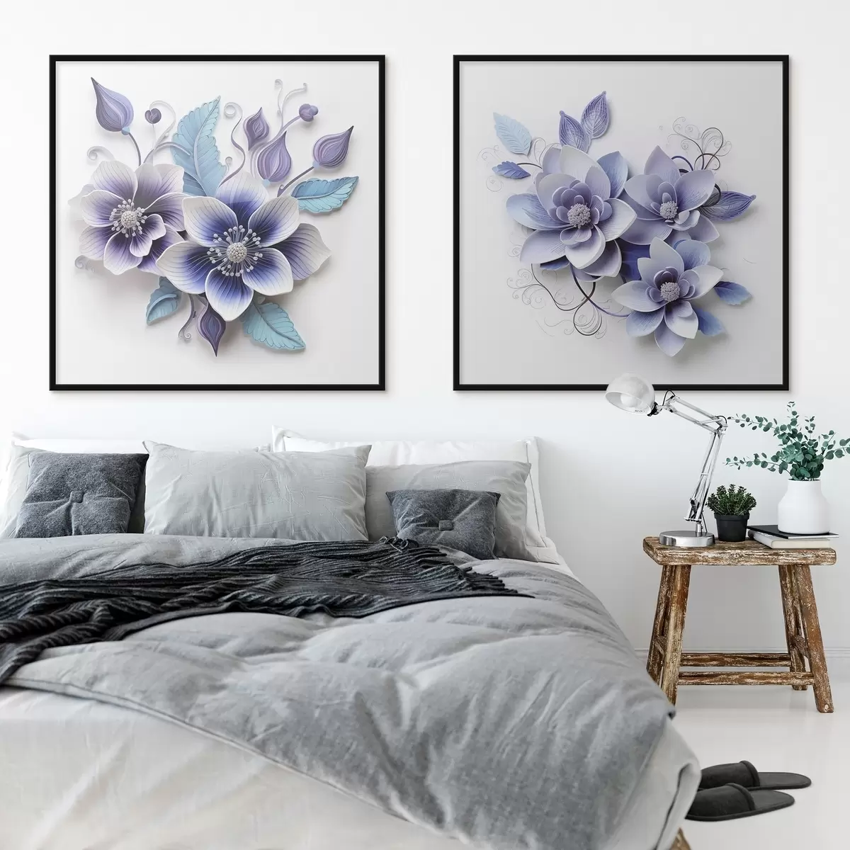 Plakat Abstrakcyjne niebieskie kwiaty d00426