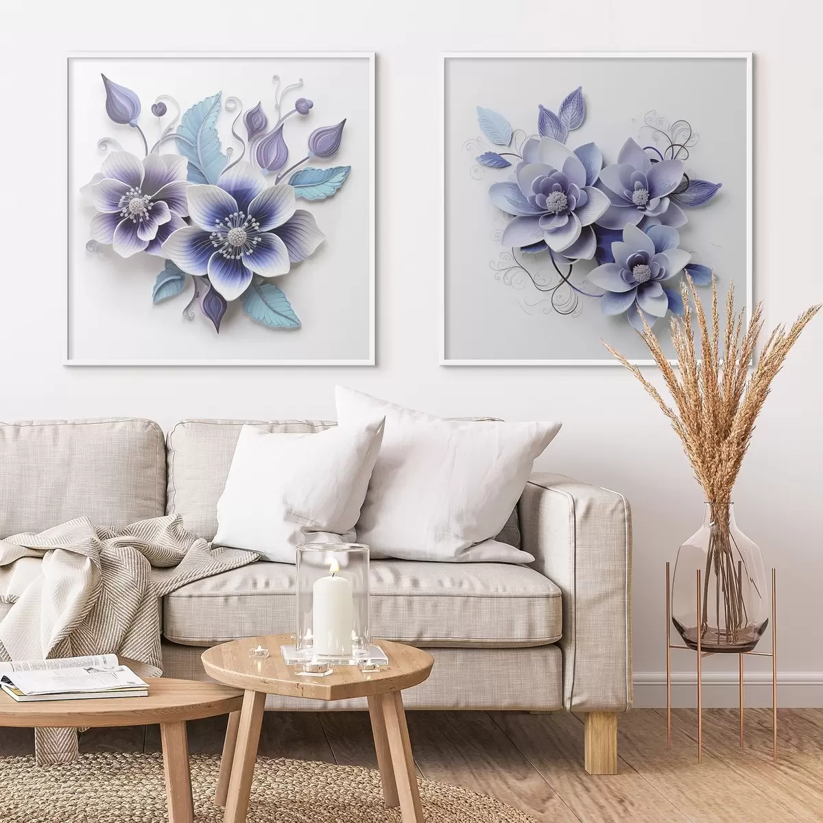 Poster Abstrakcyjne niebieskie kwiaty Nr d00426