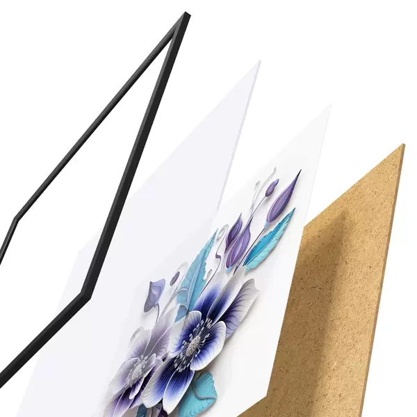 Plakat składa się z ramy, pleksi, wydrukowanego obrazu i podkładu z płyty wiórowej. Plakat można natychmiast zawiesić na ścianie dzięki uchwytom z tyłu.