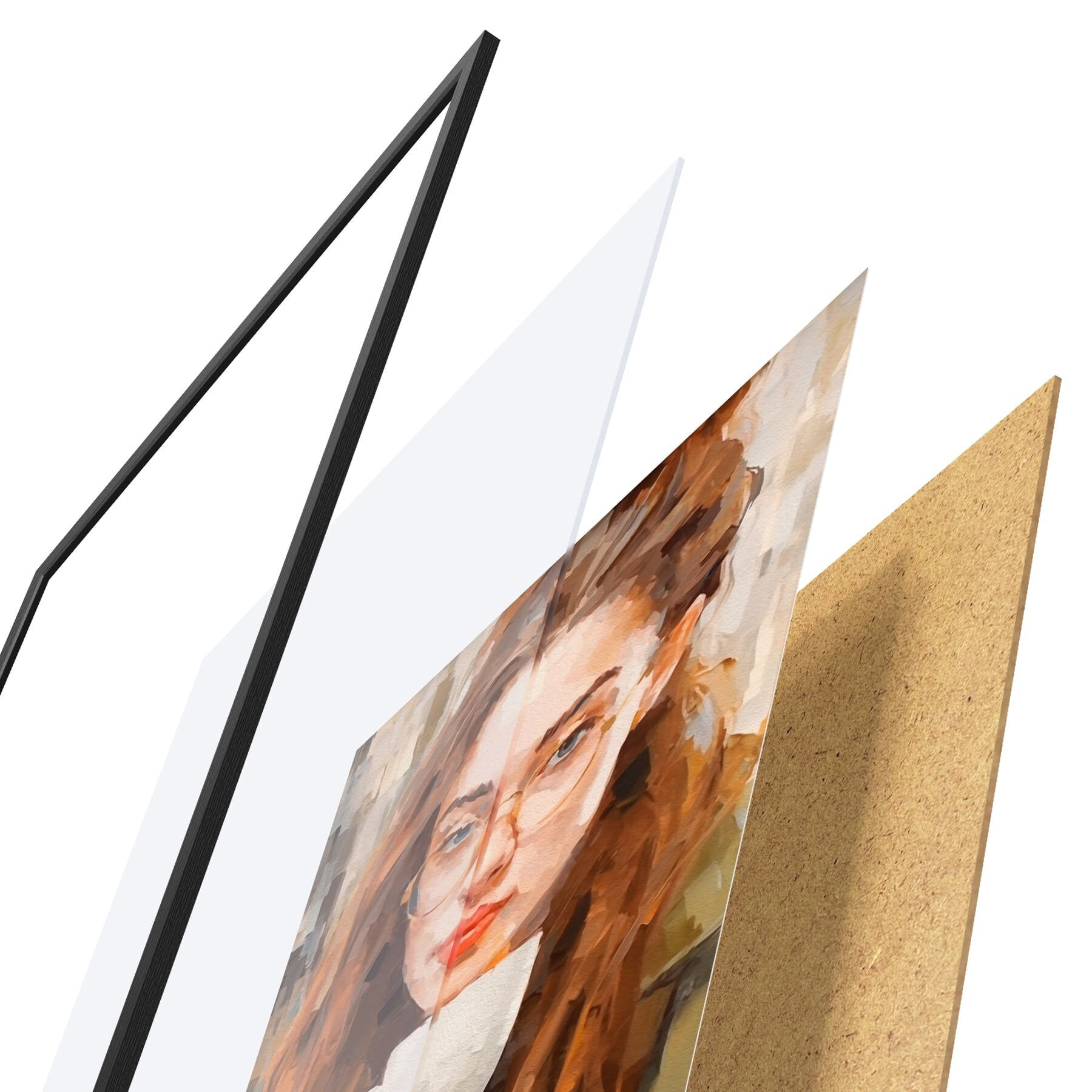 Plakat składa się z ramy, pleksi, wydrukowanego obrazu i podkładu z płyty wiórowej. Plakat można natychmiast zawiesić na ścianie dzięki uchwytom z tyłu.